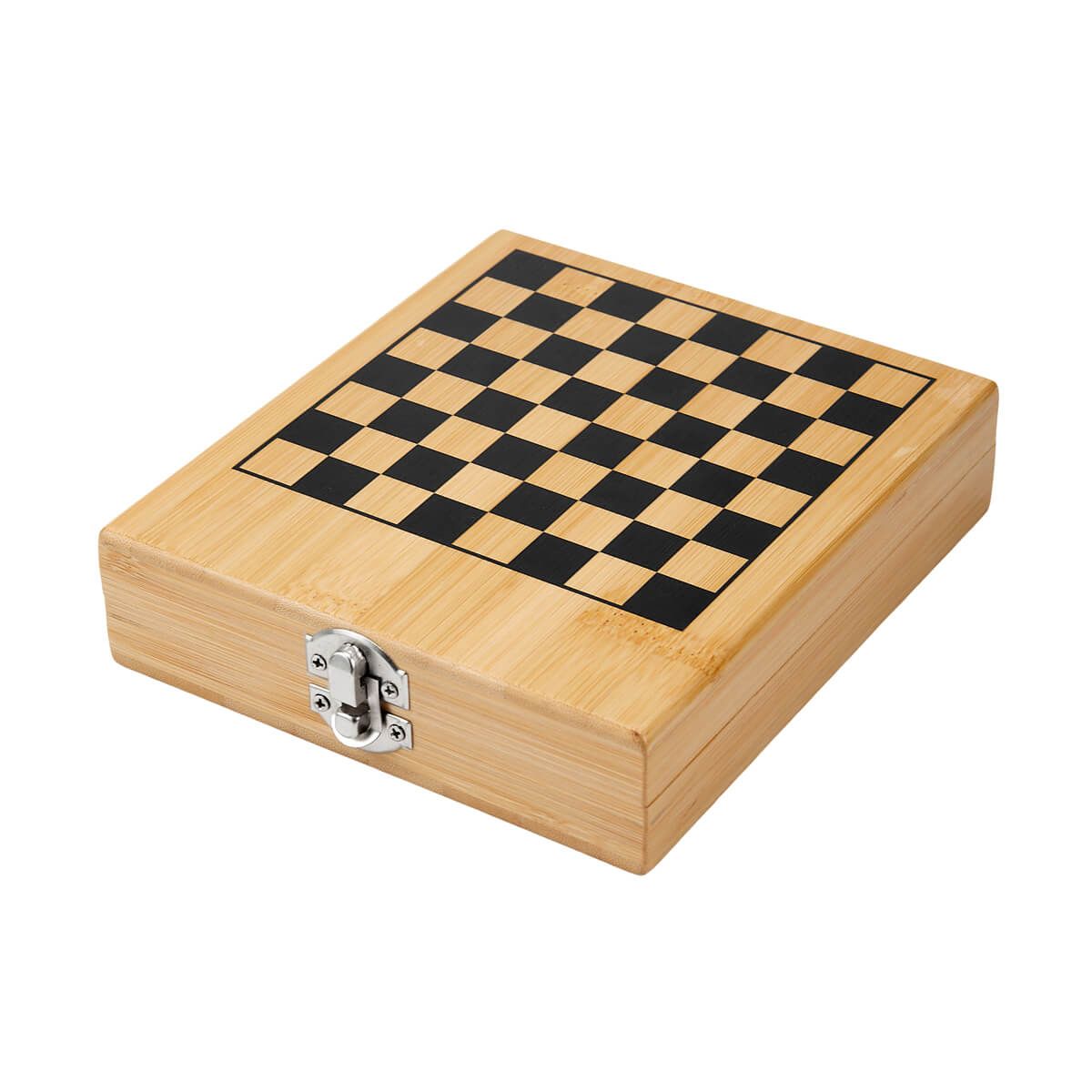 Fabricado en bambú, ideal para los amantes del juego estratégico que valoran la practicidad y el diseño. Incluye 32 piezas en dos tonos de madera (oscuro y claro), perfectamente proporcionadas y almacenables dentro de su propio estuche. El tablero está impreso directamente sobre la tapa del estuche, lo que permite jugar cómodamente y guardar todo con facilidad. Su broche metálico garantiza seguridad durante el transporte. La madera es un producto natural el cual puede presentar variaciones en tonalidades y vetas. Incluye caja Individual.