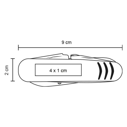 Navaja metálica multiusos con 21 funciones, entre las que destacan: sierra, destapador, abrelatas, tijeras, serrucho, navaja, sacacorchos, lima y desarmador.