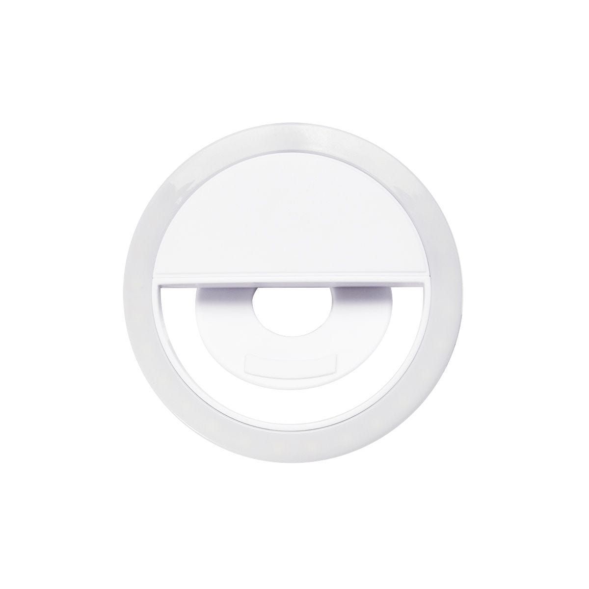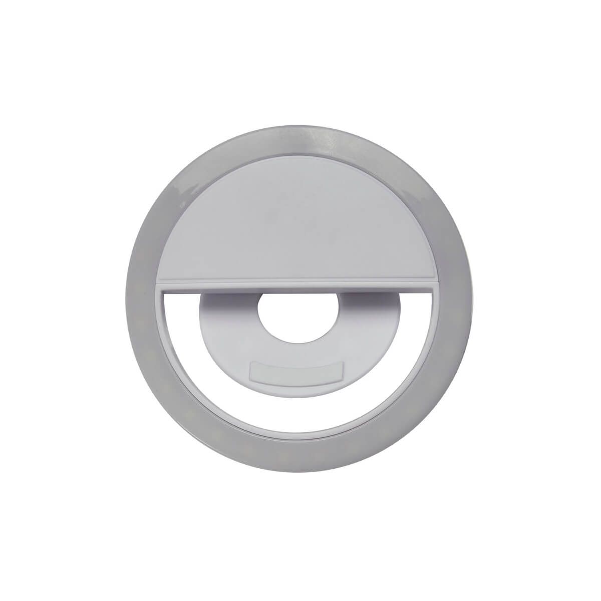 Aro de luz de 28 LEDs con clip ajustable. Se puede montar en smartphones o computadoras para mejorar las fotografías, videos o videollamadas. Cuenta con 3 diferentes intensidades de luz. Incluye batería recargable y cable auxiliar micro USB.