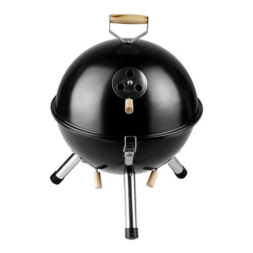 Asador portátil de carbón. Incluye parrilla y tapa con difusor de temperatura.