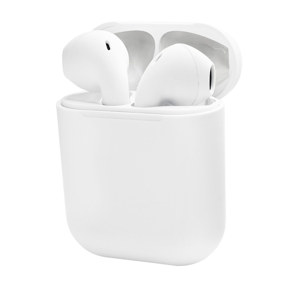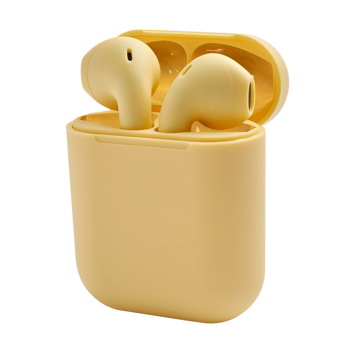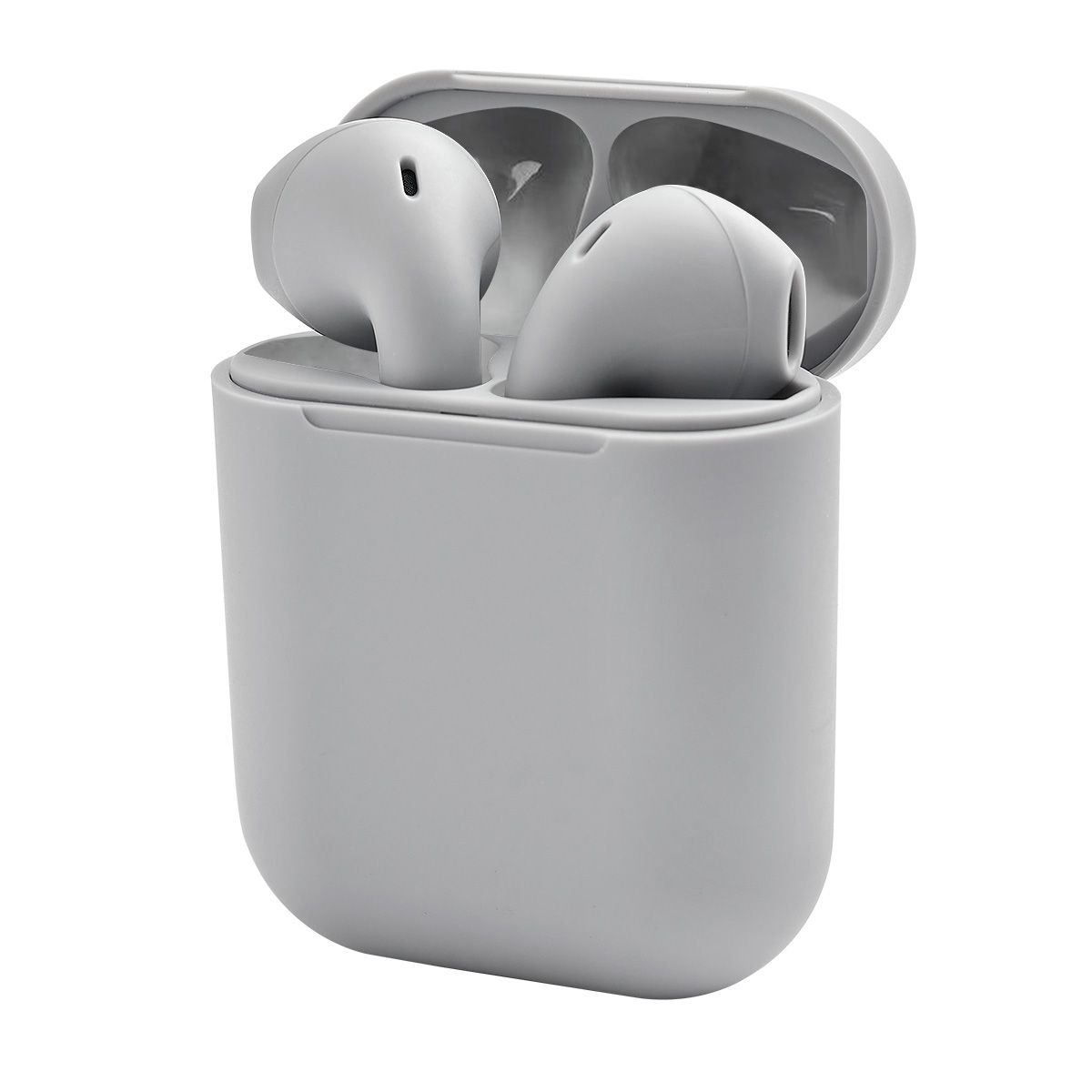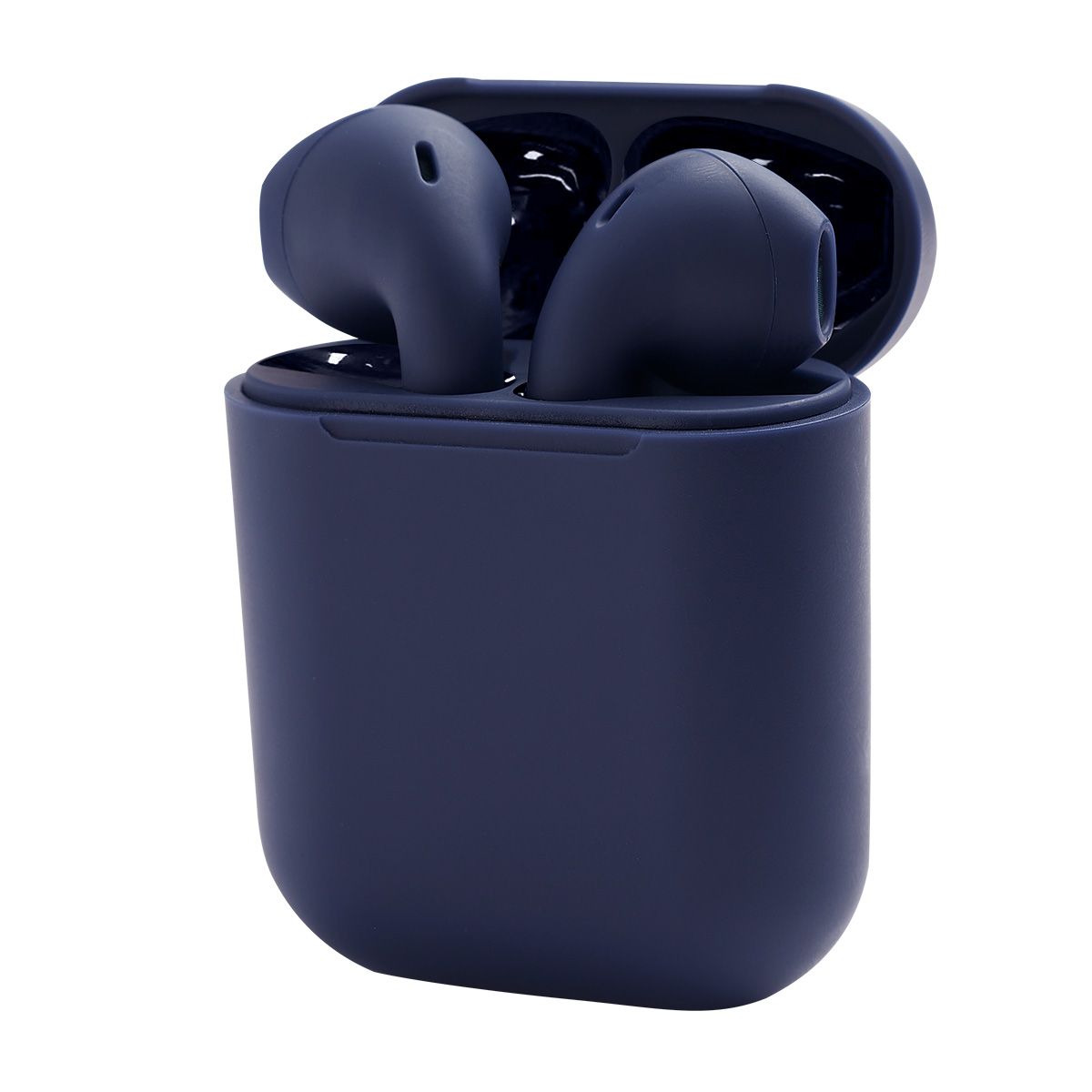Audífonos bluetooth con terminado rubber y estuche recargable. Control touch para reproducción de música y función de llamada. Reproducción de música de 2 a 3 horas aproximadamente. Rango de conexión de 10 metros. Batería de 30 mAh (audífonos) y 200 mAh (estuche). Incluye estuche con puerto lightning y cable auxiliar.