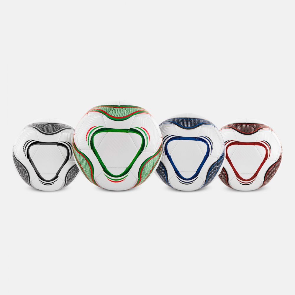 Balón fútbol soccer con 32 gajos. Cámara winding bladder. Peso 400 a 450 gr. Cosido a máquina. 3 Capas. Nivel máximo de presión 6-8 psi. Grosor EVA 2.6mm.