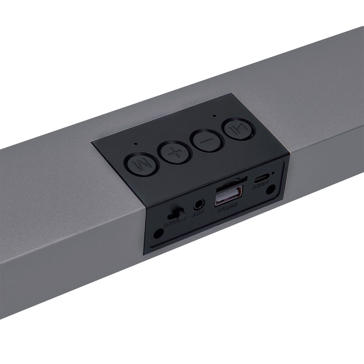 Bocina bluetooth con batería recargable. Tiempo de reproducción de 4 hrs aproximadamente. Controles integrados de volumen y reproducción de audio. Puerto para tarjeta TF. Incluye cable cargador USB.