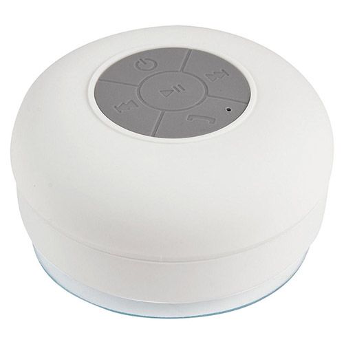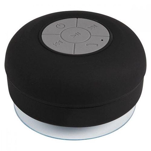Bocina bluetooth con batería recargable. Resistente a salpicaduras de agua. Ventosa de fuerte fijación para superficies lisas. Reproducción de música 6 hrs aproximadamente. Función manos libres. Controles de volumen, reproducción de audio y micrófono. Incluye cable cargador USB. Este producto por ser últimas piezas puede presentar alguna variación, no se aceptan devoluciones.