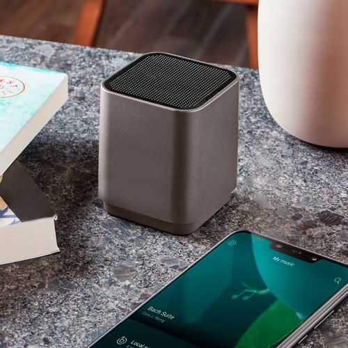 Bocina bluetooth con batería recargable. Reproducción de música de 1.5 hrs aproximadamente. Cable cargador USB incluido. Logotipo se ilumina al grabar. Este producto por ser últimas piezas puede presentar alguna variación, no se aceptan devoluciones.