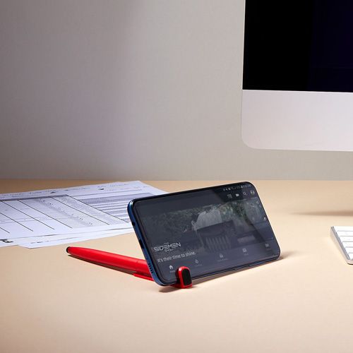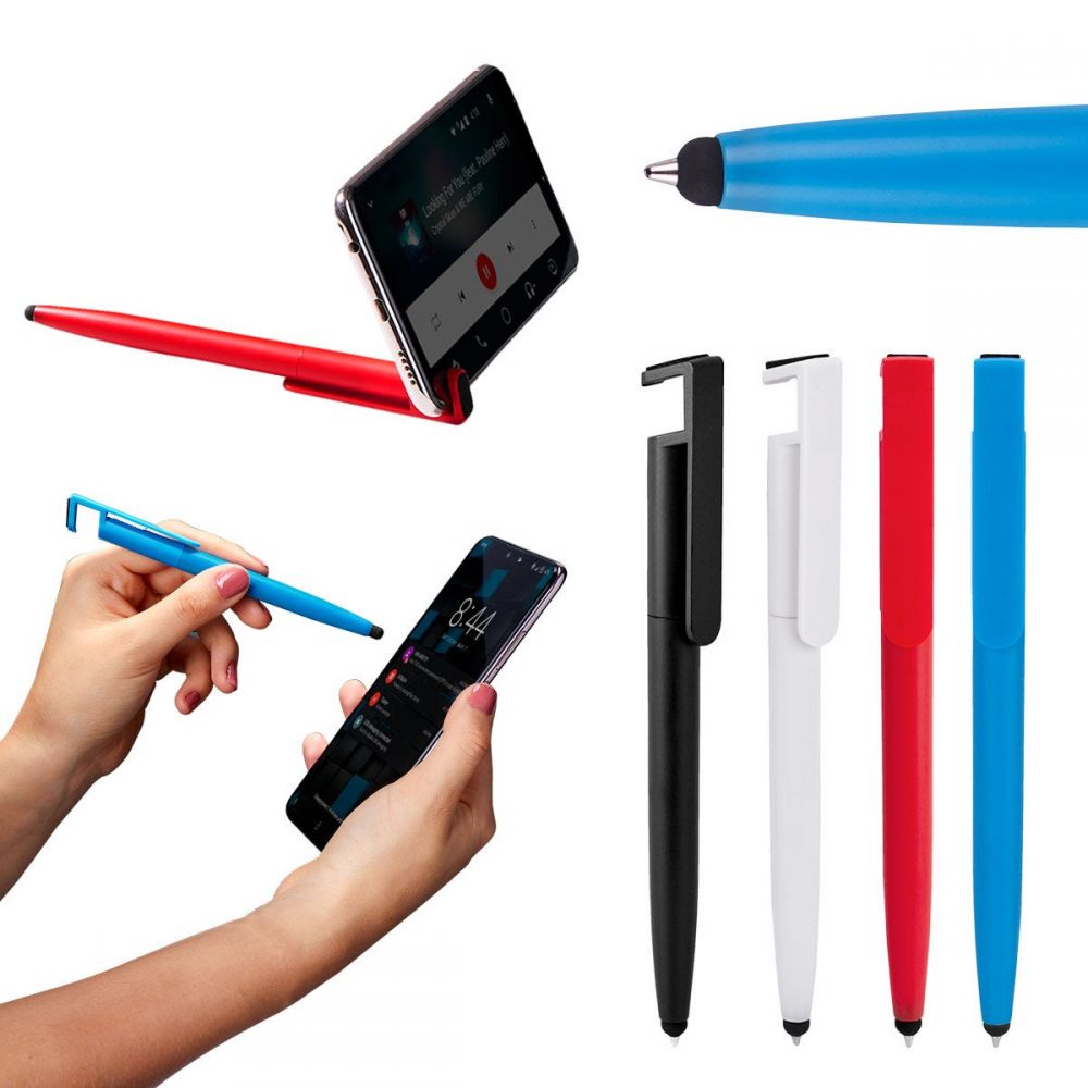 Bolígrafo con touch screen, base para smartphone y limpiador de pantalla. Mecanismo twist.