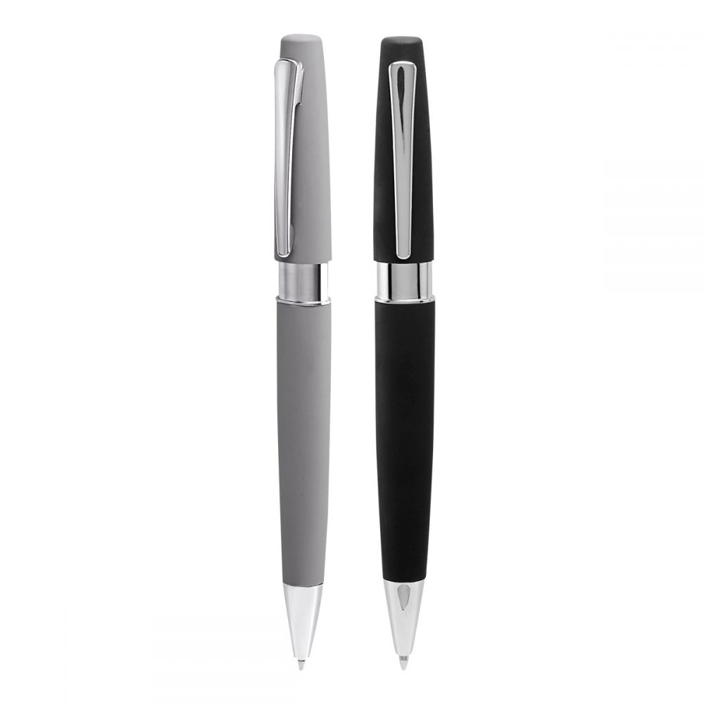 Bolígrafo terminado rubber. Mecanismo pulsador. Incluye funda.