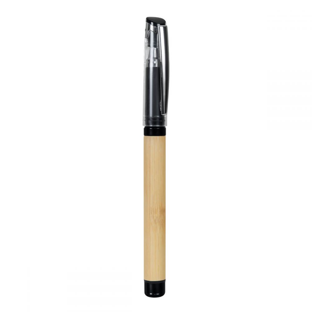 Bolígrafo de bambú con tapón. Grip antiderrapante. Tinta gel. Incluye funda.