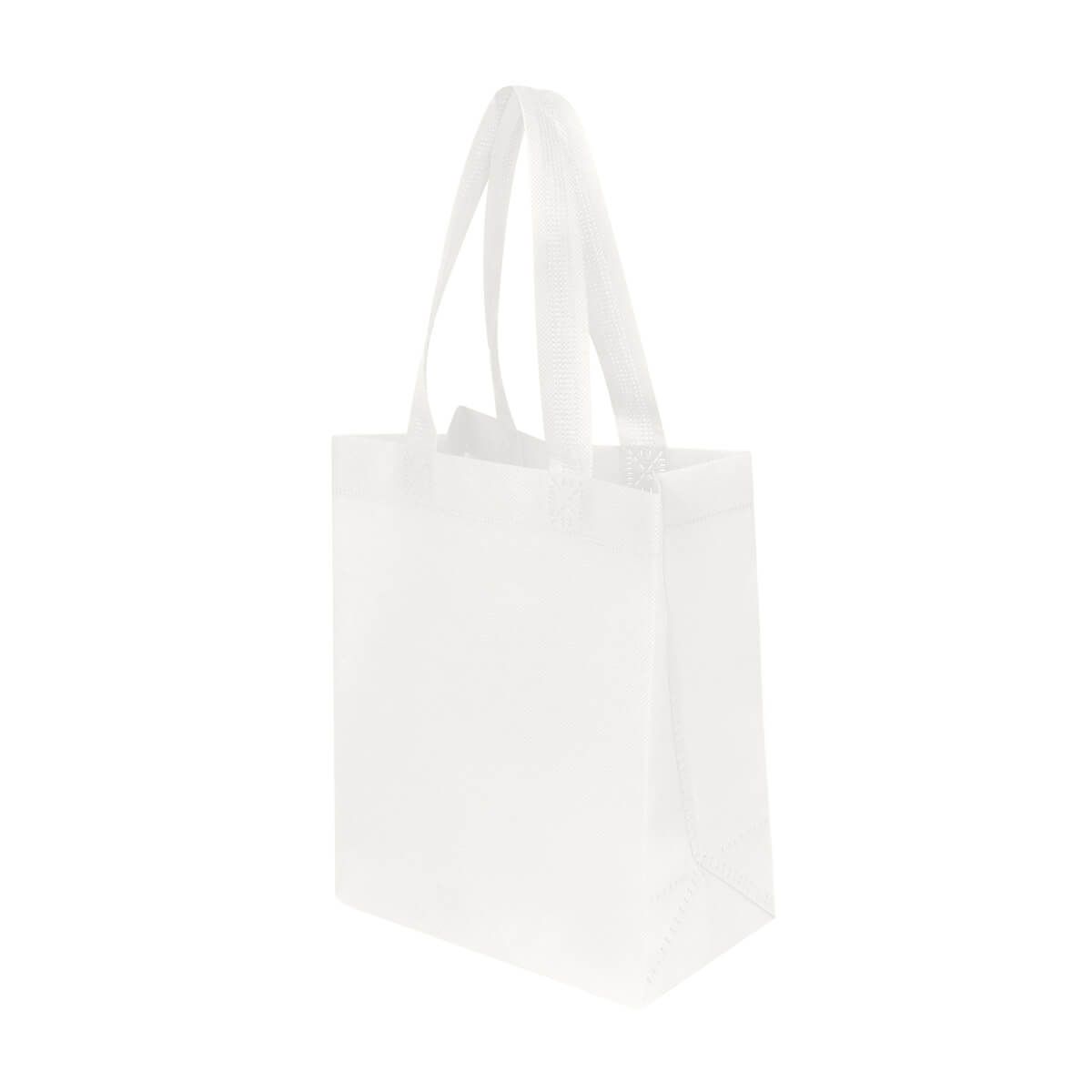 Bolsa mini de Non Woven. Incluye fuelle y asas. Sellada a calor. Ideal para artículos pequeños.