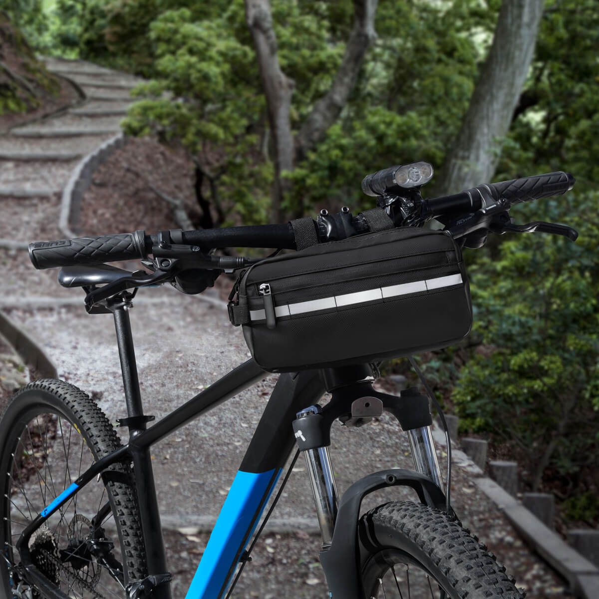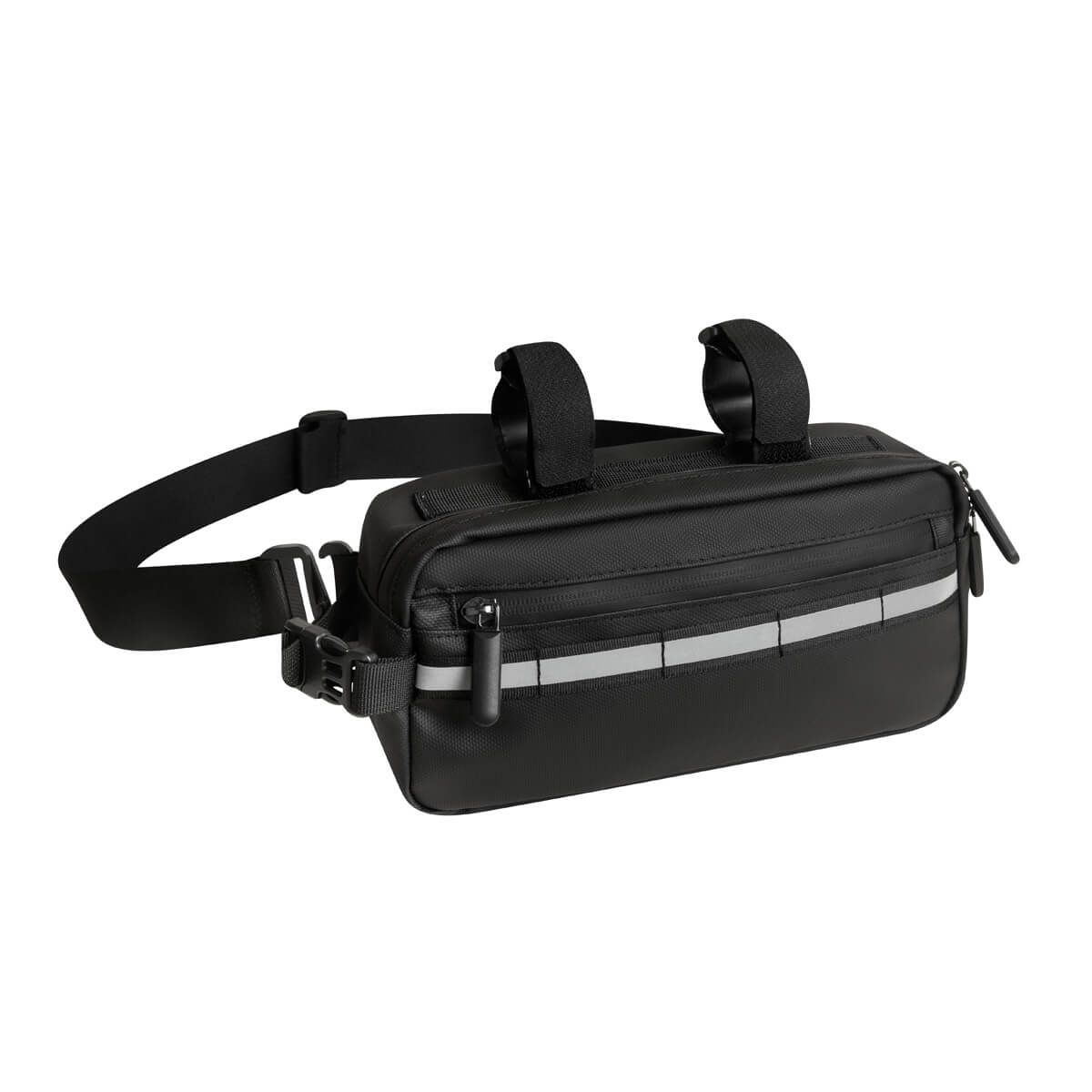 Bolsa multifuncional para bicicleta y resistente al agua, diseñada para un estilo de vida activo. Se adapta fácilmente al cuadro de tu bicicleta o puede usarse como bolsa crossbody para mayor versatilidad. Ofrece almacenamiento práctico con un bolsillo frontal y un compartimento principal espacioso con bolsillos internos para organizar tus objetos esenciales. Su banda reflejante mejora la seguridad en trayectos nocturnos o con poca luz.