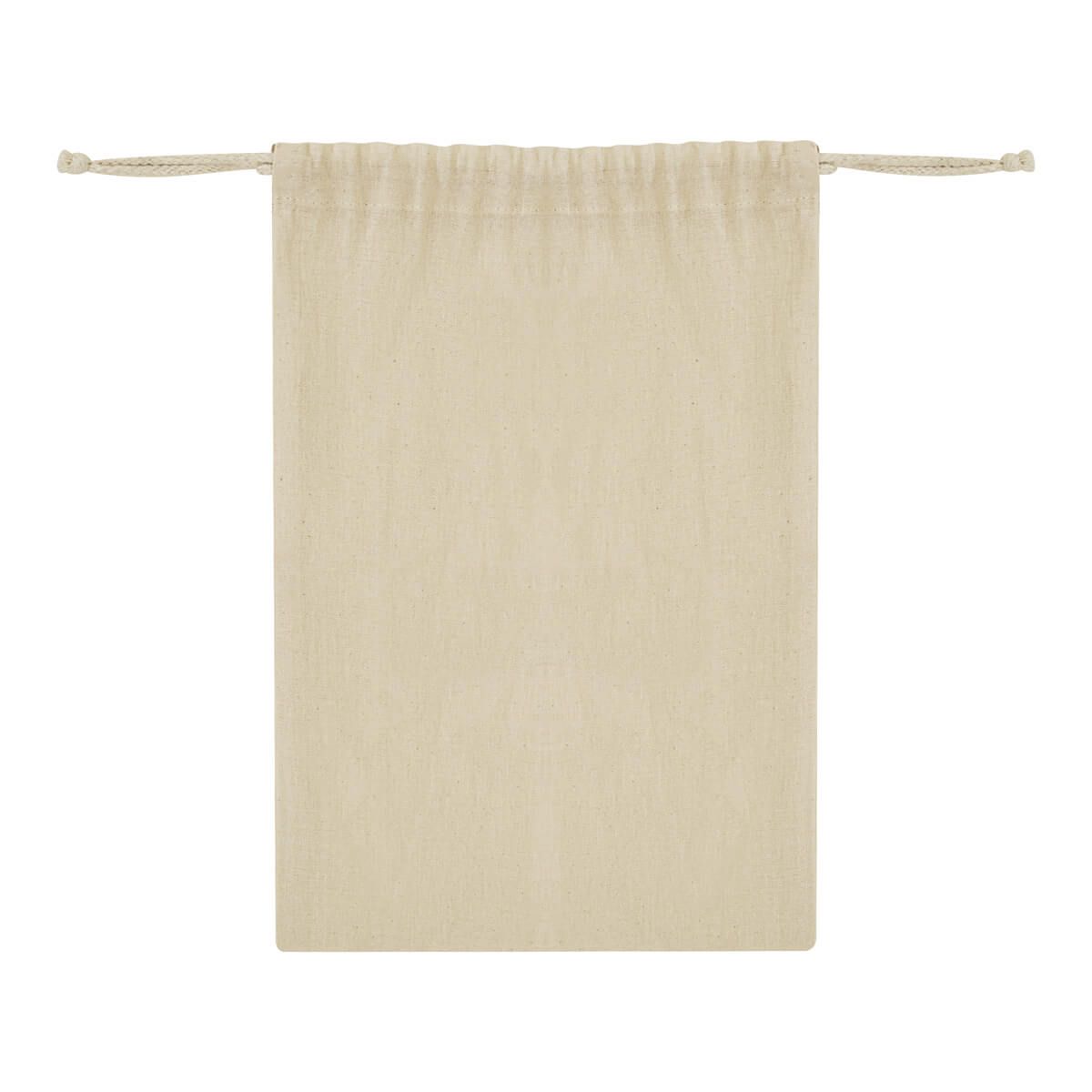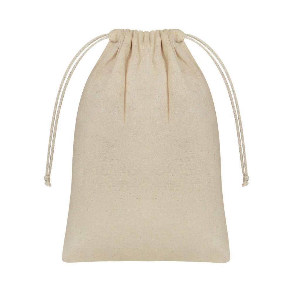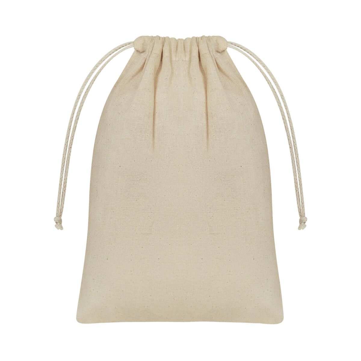 Bolsa con cierre de jareta. Fabricada con algodón natural, este accesorio ecofriendly es reutilizable, perfecto para utilizar como bolsa de regalo o para llevar pequeños accesorios.