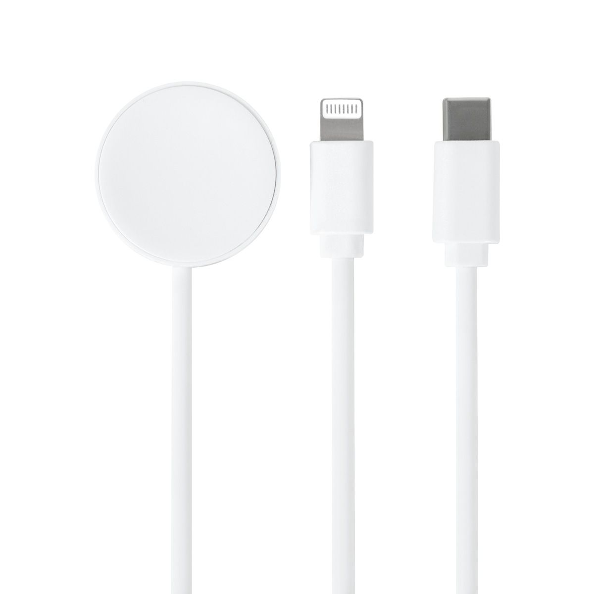 Cable cargador 5 en 1. Incluye conector de entrada USB y tipo C, conector de salida lightning (8 pines), micro USB, tipo C y cargador inalámbrico para reloj inteligente (compatible con dispositivos que cuenten con tecnología de carga inalámbrica). Este cable multifunción, permite cargar varios dispositivos simultánemanete, lo que te ayuda a ahorrar tiempo y espacio. No admite la transferencia de datos.
