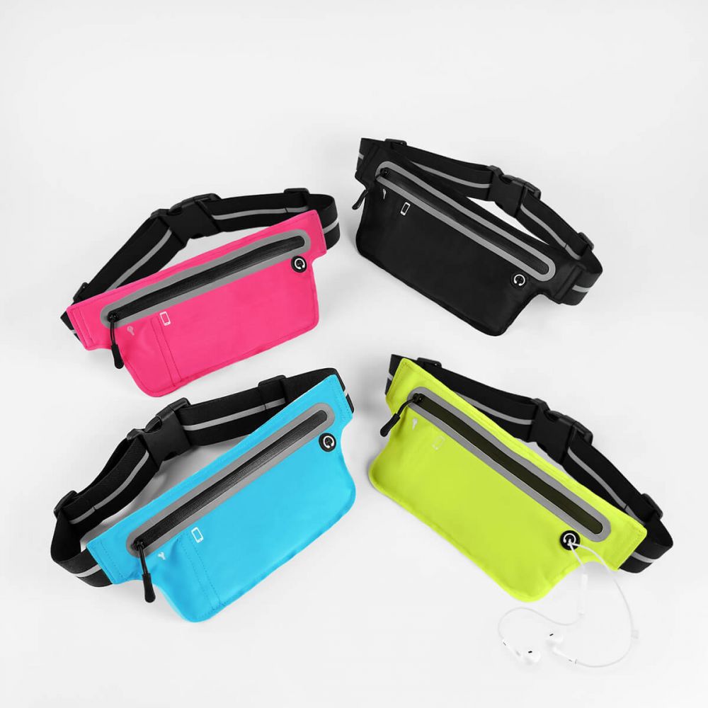 Cangurera deportiva ligera. Incluye interior plastificado. Ofrece resistencia al agua y comodidad en todo momento. Su compartimento con cierre y puller con correa permite guardar lo esencial, mientras que la salida para audífonos con cable te acompaña con música en cada paso. La banda elástica con broche de plástico se adapta fácilmente al cuerpo, y sus detalles reflejantes en cinturón y cuerpo brindan visibilidad extra en condiciones de poca luz.
