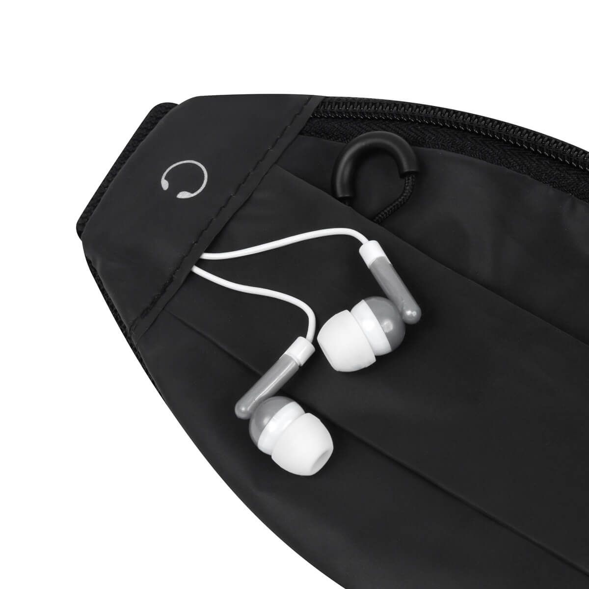 Cangurera deportiva perfecta para los amantes del running. Su compartimento principal tiene un espacio para smartphone e incluye una apertura para audífonos con cable. El compartimento frontal es ideal para objetos pequeños. Su correa ajustable con broche de plástico te permite llevarla cómodamente en la cintura sin afectar tu movilidad durante el entrenamiento al aire libre.
