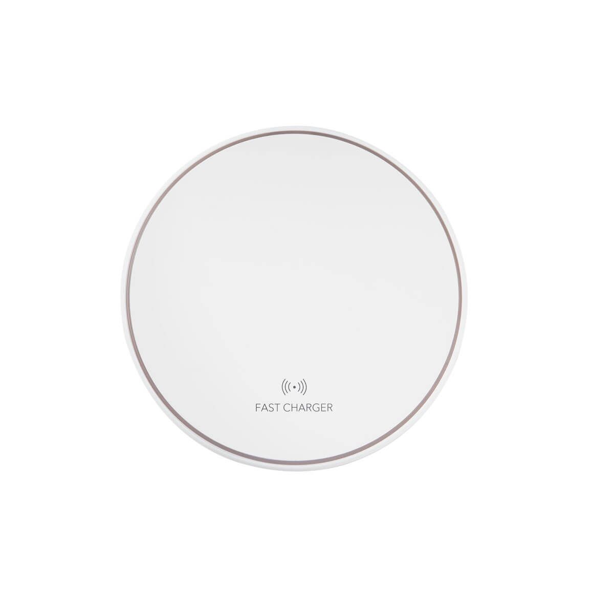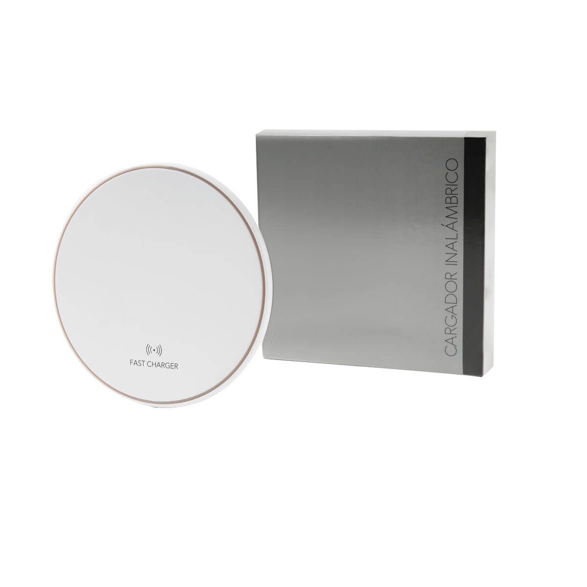 Cargador inalámbrico "fast charge". Velocidad máxima de carga 15W. Compatible con tecnología de carga inalámbrica tipo Qi. Se enciende luz color verde cuando está en reposo y luz color azul cuando está en proceso de carga. Incluye cable auxiliar tipo C y caja individual.