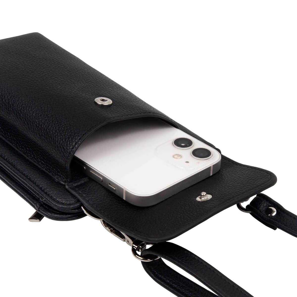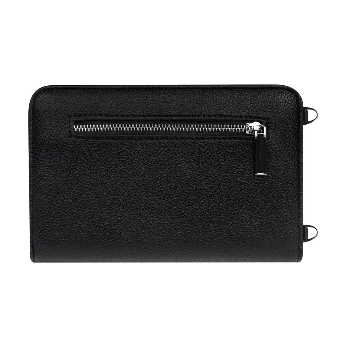 Cartera multiusos. Es el accesorio perfecto para viajeros. Cuenta con un compartimento frontal, especial para tu smartphone para fácil acceso. En su interior incluye secciones dedicadas para tarjetas, documentos y pasaporte, y dos ranuras para tarjetas SIM, ideal para mantener todo organizado durante tus aventuras. En la parte posterior, un bolsillo con cierre es perfecto para monedas o pequeños documentos. Su asa ajustable y removible con broches metálicos añade versatilidad, permitiéndote llevarla como desees.