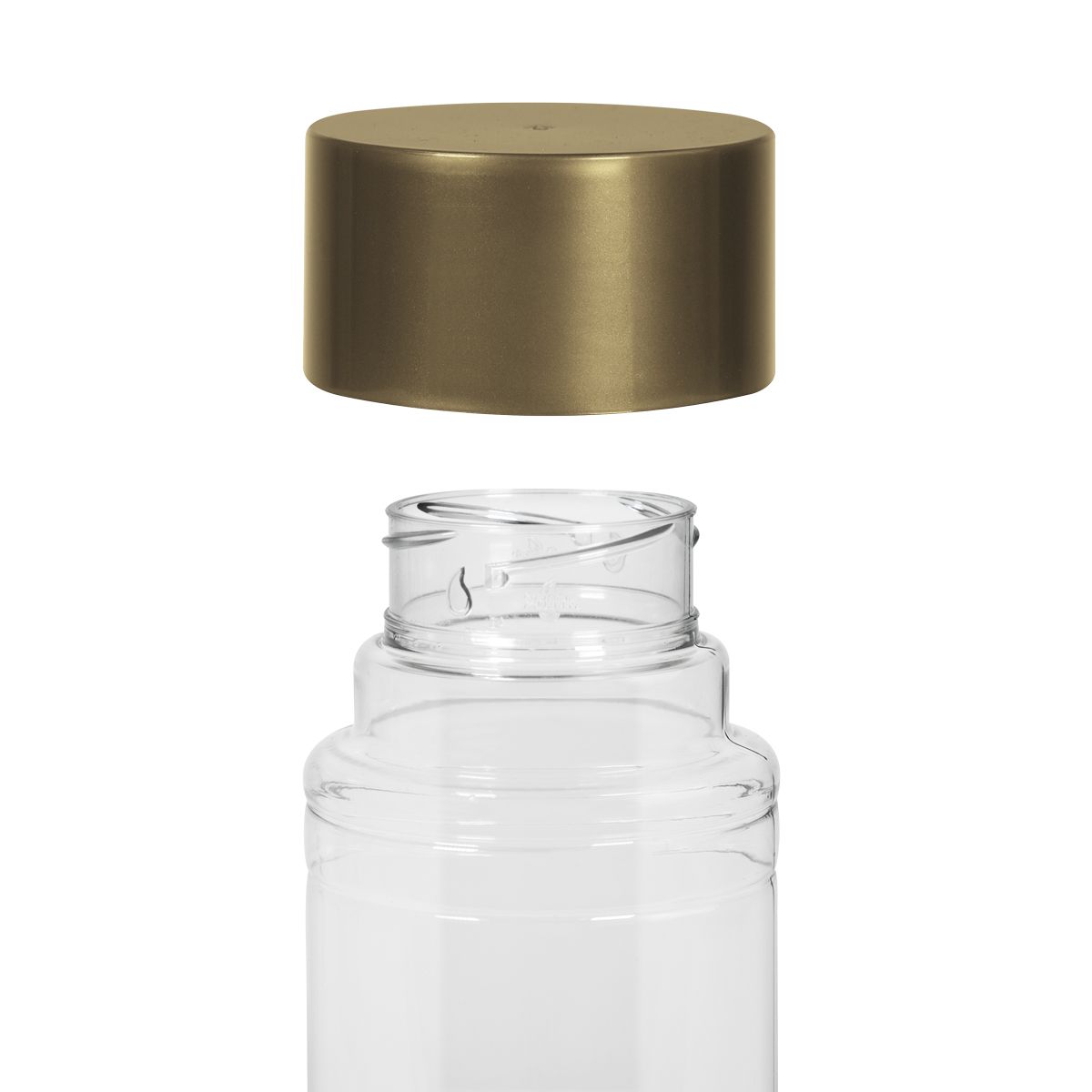 Tapa de color metalizado. Sistema de rosca twist-off que permite abrir y cerrar la tapa en un giro. Mantener el linner en el interior de la tapa en todo momento, se debe retirar hasta su uso final. Revisar que la tapa no esté cerrada completamente. No exponer el cilindro a temperaturas mayores a 40 °C durante su almacenamiento y transportación. Mantener en su empaque individual antes y después de su transformación. No apto para bebidas calientes. No introducir en microondas ni lavavajillas.