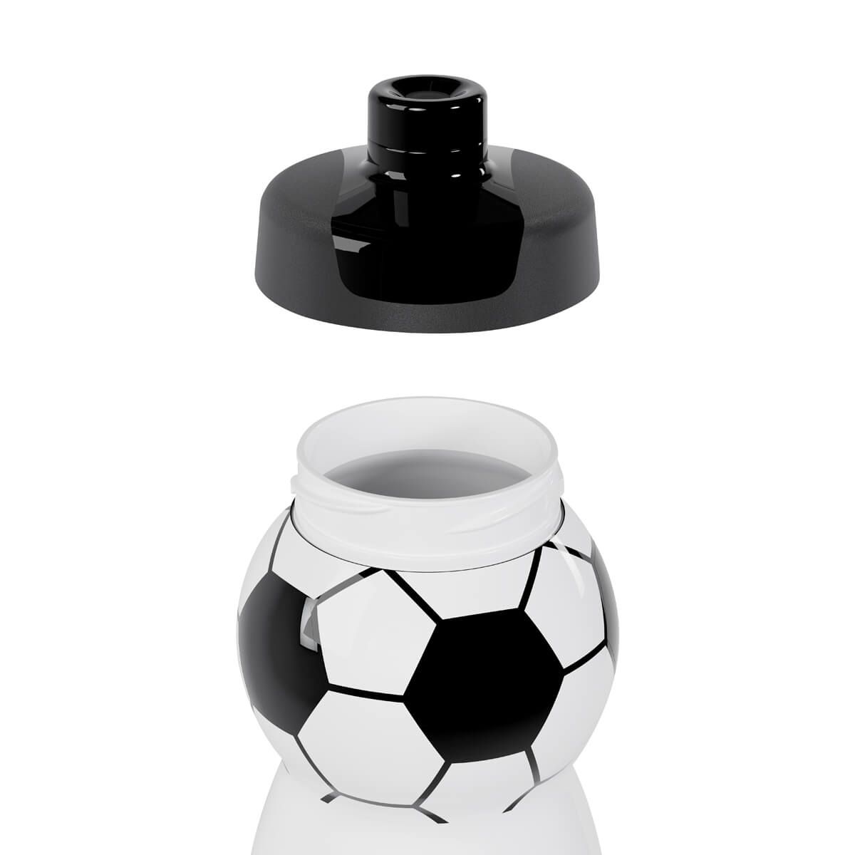 Sistema de rosca twist-off que permite abrir y cerrar la tapa en un giro. Incluye válvula de seguridad. Su diseño de balón de soccer la convierte en el accesorio perfecto para llevar la pasión futbolera a todas partes. Mantener el linner en el interior de la tapa en todo momento, se debe retirar hasta su uso final. No exponer el cilindro a temperaturas mayores a 40 °C y revisar que la tapa no esté cerrada completamente para su almacenamiento y transportación. Mantener en su empaque individual antes y después de su transformación. No apto para bebidas calientes. No introducir en microondas ni lavavajillas.