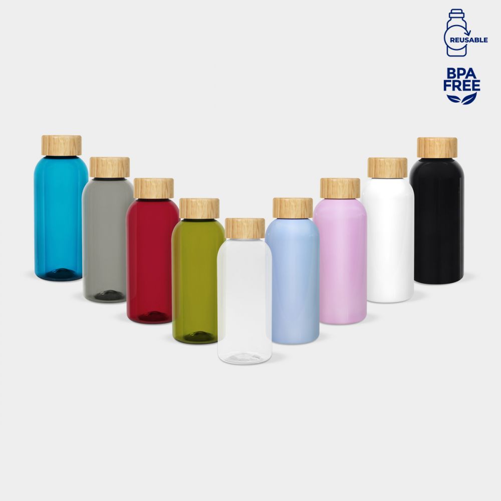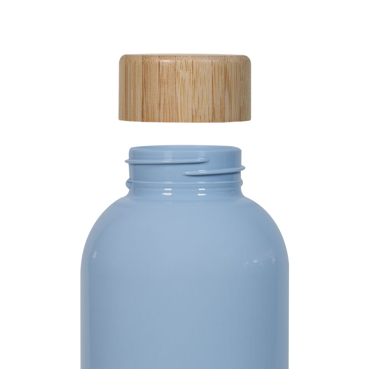 Cilindro de plástico con tapa de bambú. No exponer el cilindro a temperaturas mayores a 40 °C y revisar que la tapa no esté cerrada completamente para su almacenamiento y transportación. Mantener en su empaque individual antes y después de su transformación. No apto para bebidas calientes. No introducir en microondas ni lavavajillas. El bambú es un producto natural el cual puede presentar variaciones en tonalidades y vetas.