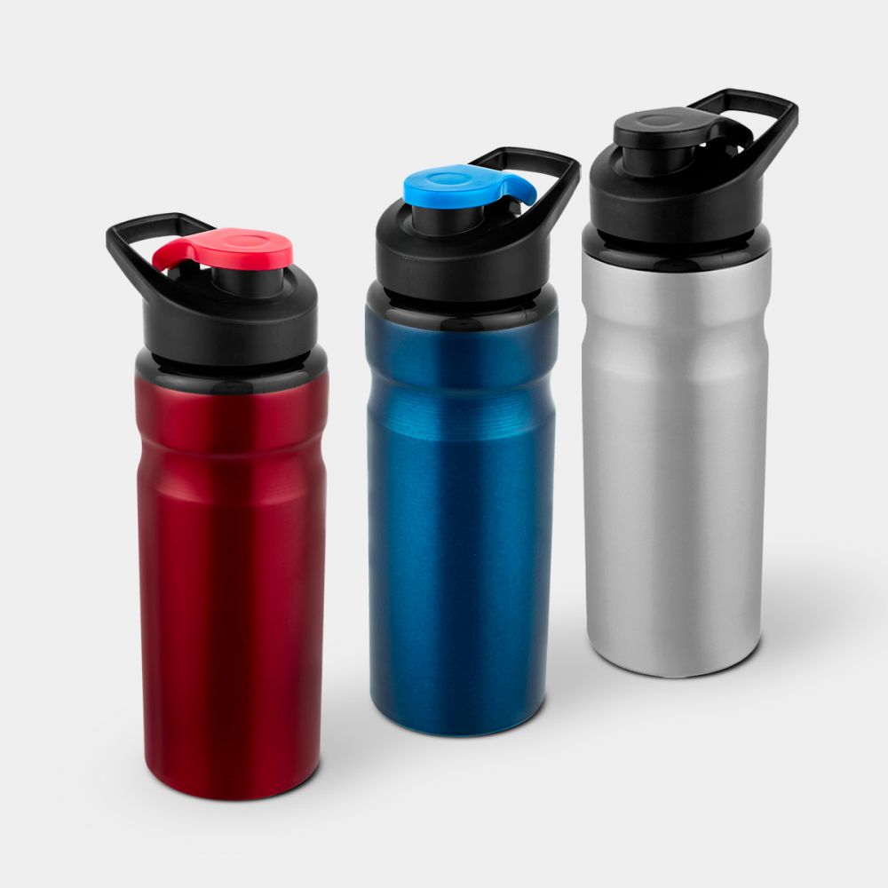 Cilindro de aluminio de una pared. Tapa de plástico con cierre de rosca, asa, boquilla y sobre tapa de presión. Incluye caja individual.