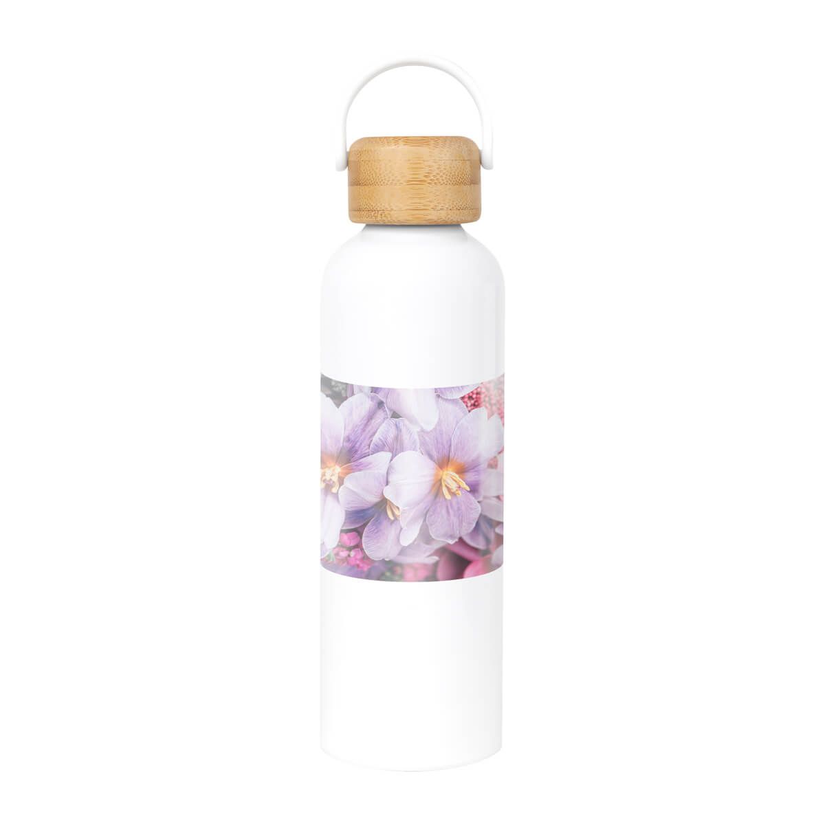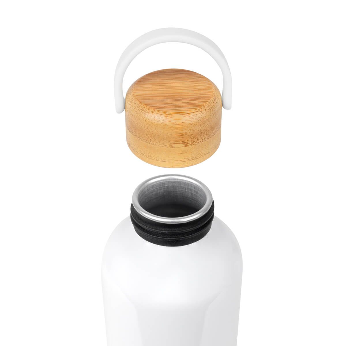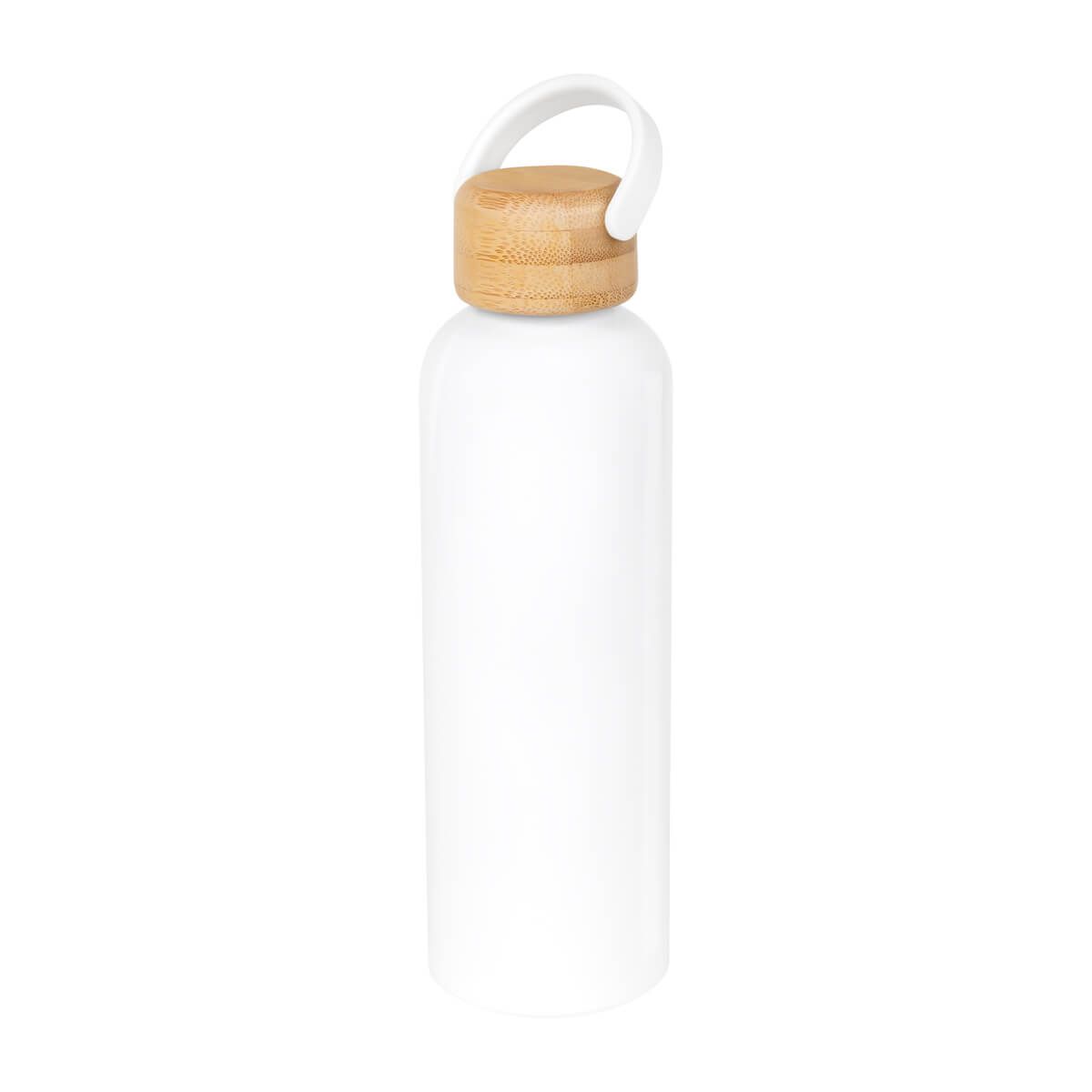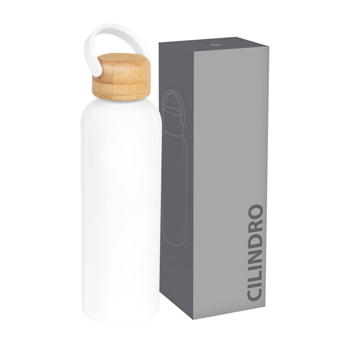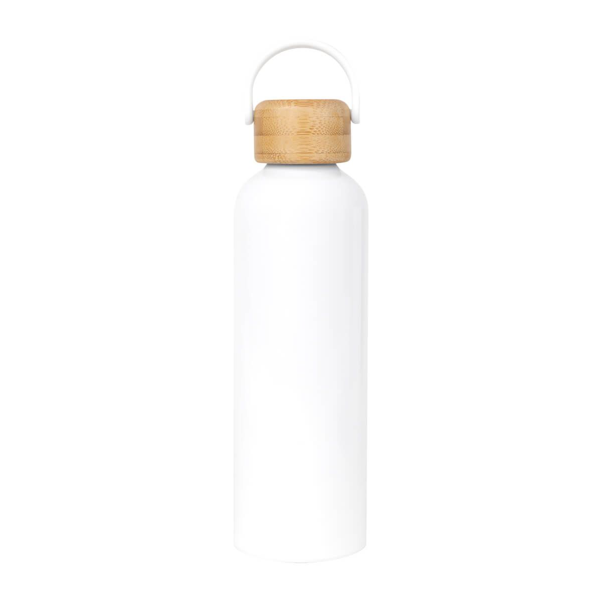 Cilindro metálico para sublimar de una pared. Tapa de bambú con cierre de rosca y asa de plástico. Incluye caja individual. El bambú es un producto natural el cual puede presentar variaciones en tonalidades y vetas.