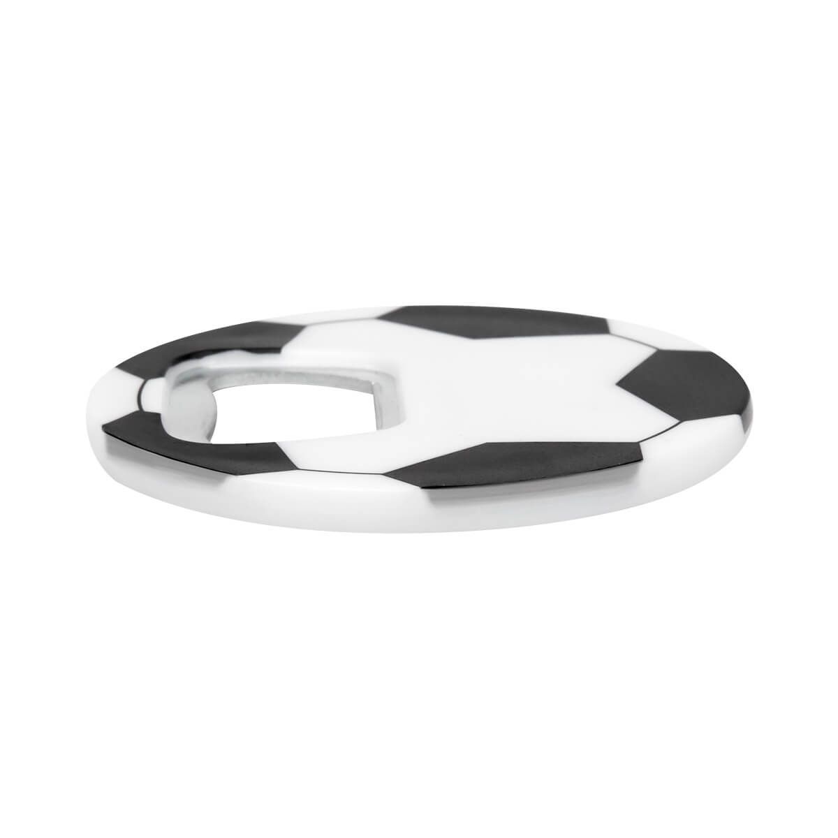 Destapador plástico circular con impresión de balón. Cuenta con imán en la parte posterior para colocarlo fácilmente en superficies metálicas. Ideal para tenerlo siempre a la mano en tus reuniones.