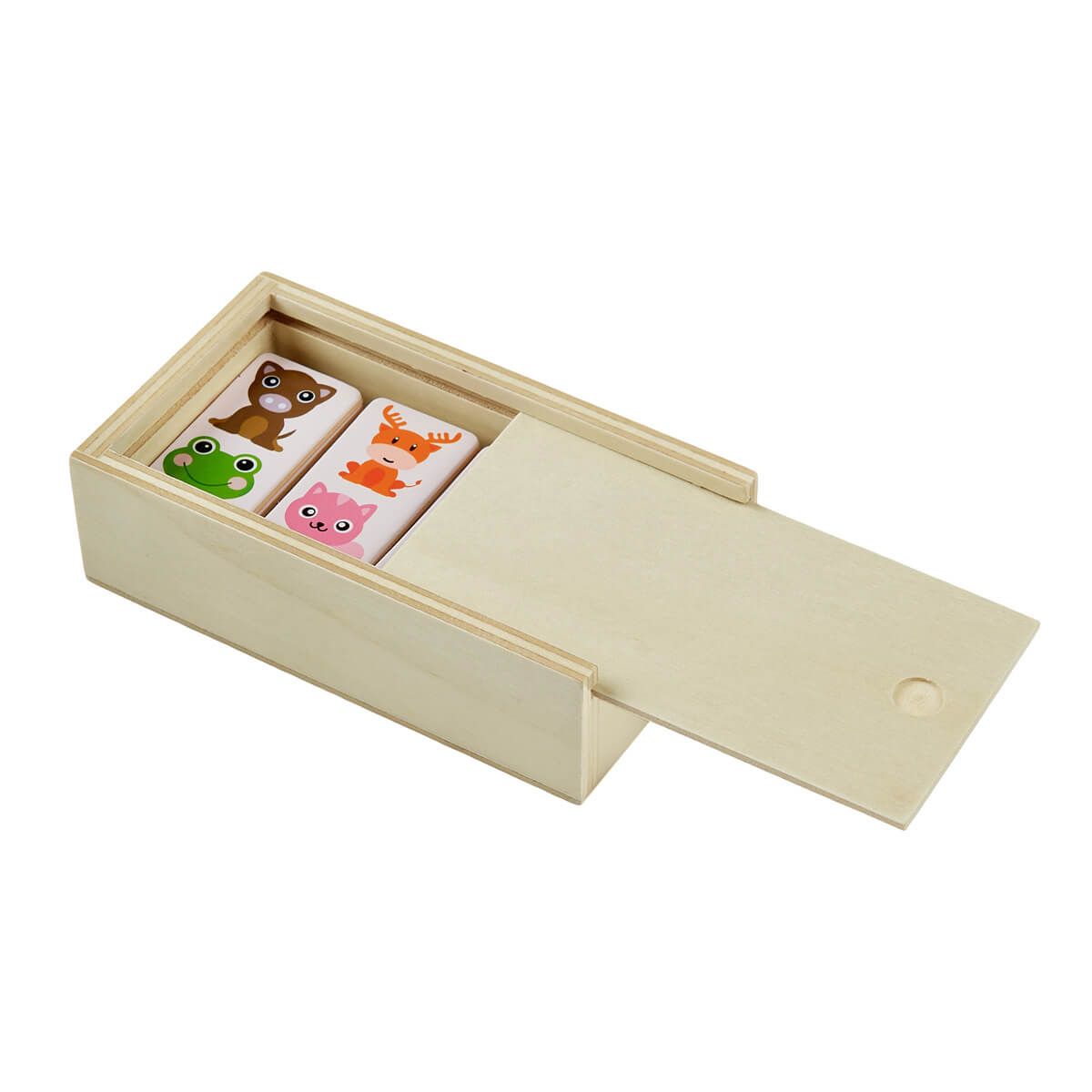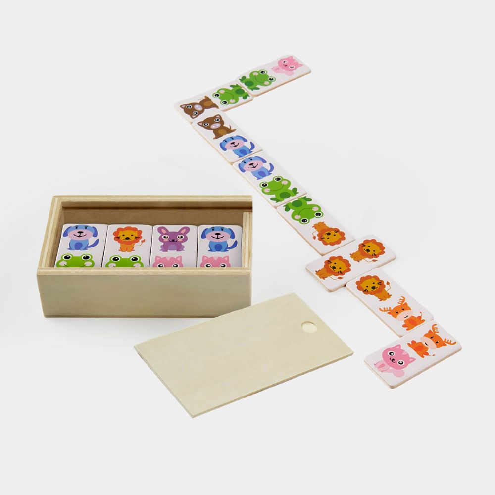 Incluye 28 fichas con adorables ilustraciones de animalitos. Ideal para estimular la memoria y la lógica de forma entretenida. Viene en una práctica caja de madera que facilita su almacenamiento y transporte. La madera es un producto natural el cual puede presentar variaciones en tonalidades y vetas. Incluye caja Individual.