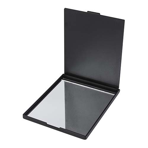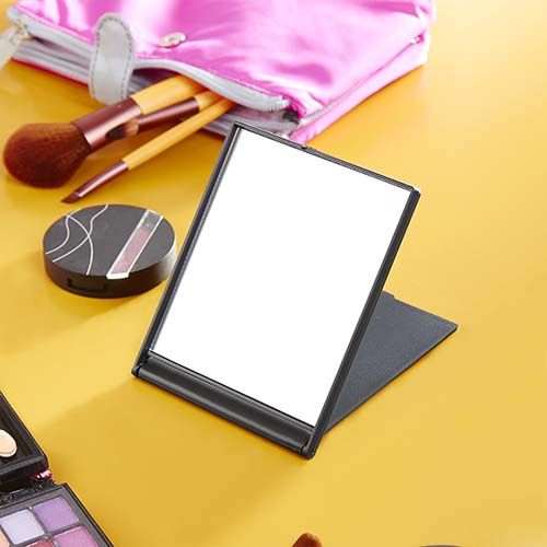 Espejo rectangular de bolsillo. La tapa sirve como base.