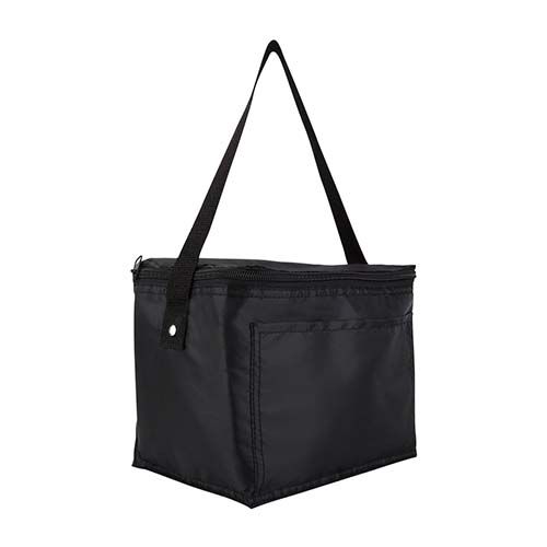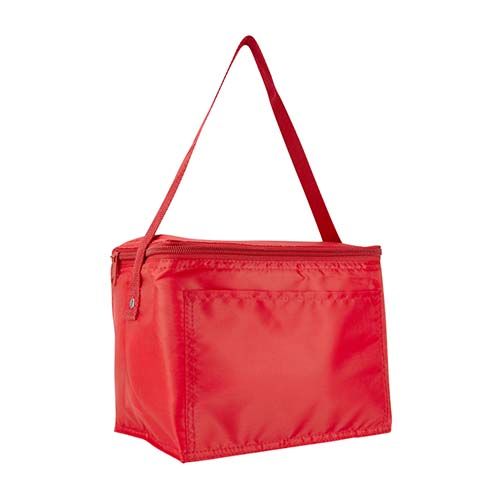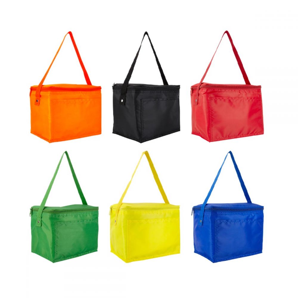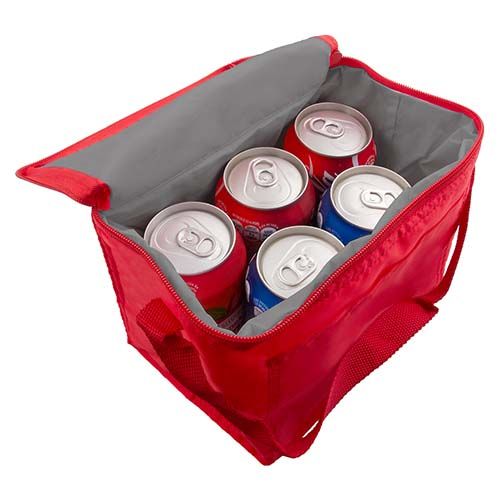 Interior plastificado impermeable. Bolsa principal con cierre y bolsa frontal. Incluye correa. Capacidad para 6 latas.