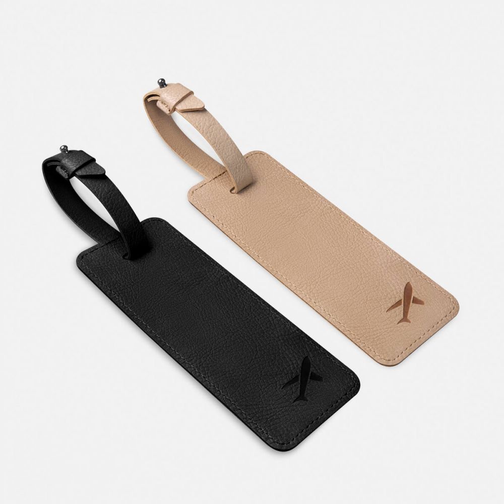 Identificador con etiqueta para maleta. Ideal para viajeros que buscan un accesorio elegante y funcional. Incluye cartón para añadir datos personales y correa ajustable, fácil de colocar y quitar.