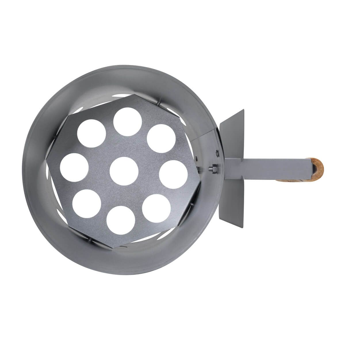 Pared de acero inoxidable. Incluye mango diseñado ergonómicamente, no resbala y permite una fácil manipulación. Este práctico accesorio acelera el proceso de encendido de carbón sin necesidad de químicos, asegurando brasas uniformes para disfrutar de una cocción perfecta. Fabricado con materiales resistentes al calor, su diseño con orificios estratégicos optimiza el flujo de aire para un encendido fácil y controlado. Capacidad de hasta 2kg.