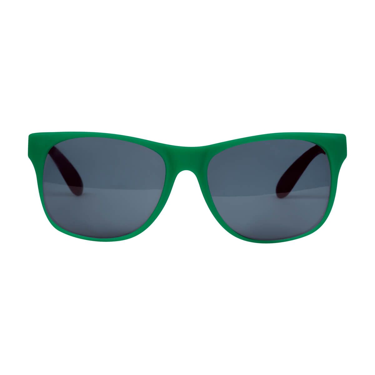 Lentes de sol con protección UV 400 y marco bicolor en verde y rojo. Diseño moderno y ligero, ideales para uso diario.