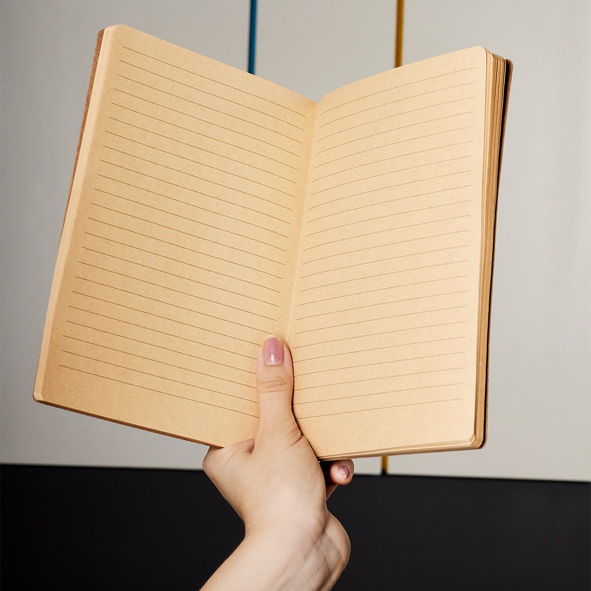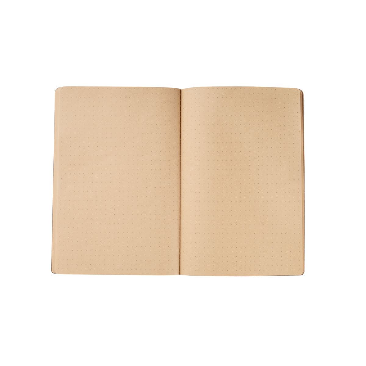 Libreta con 60 hojas: 20 de rayas, 20 con puntos y 20 en blanco. Pasta y hojas de papel kraft.
