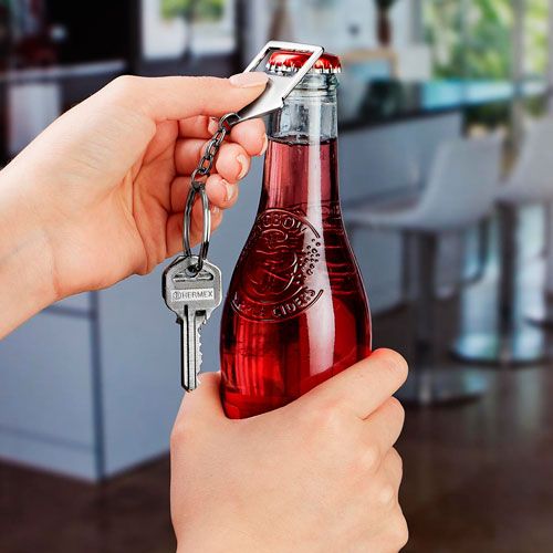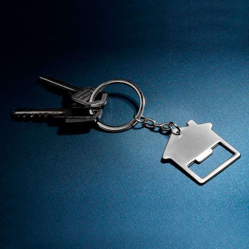 Llavero destapador con forma de casa.