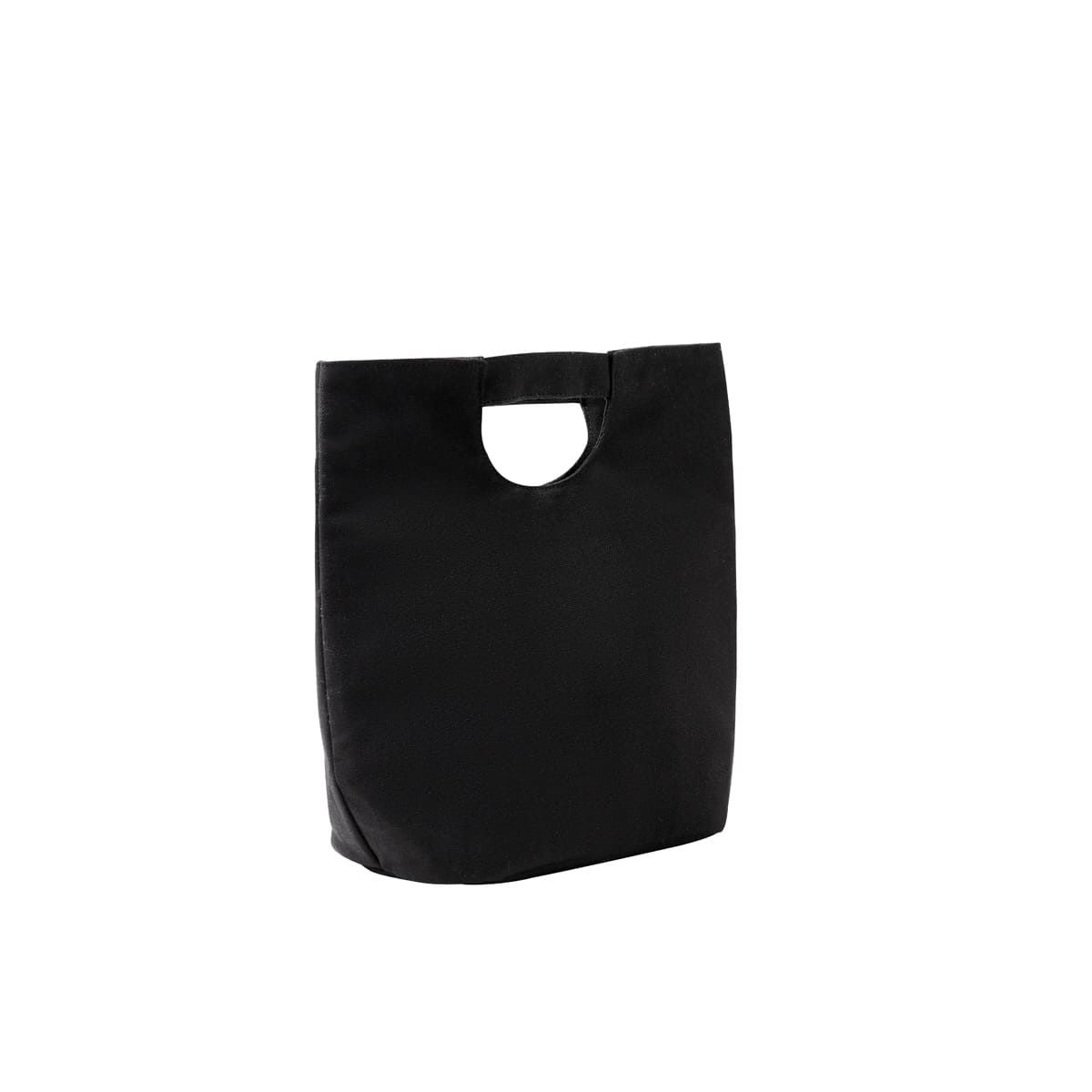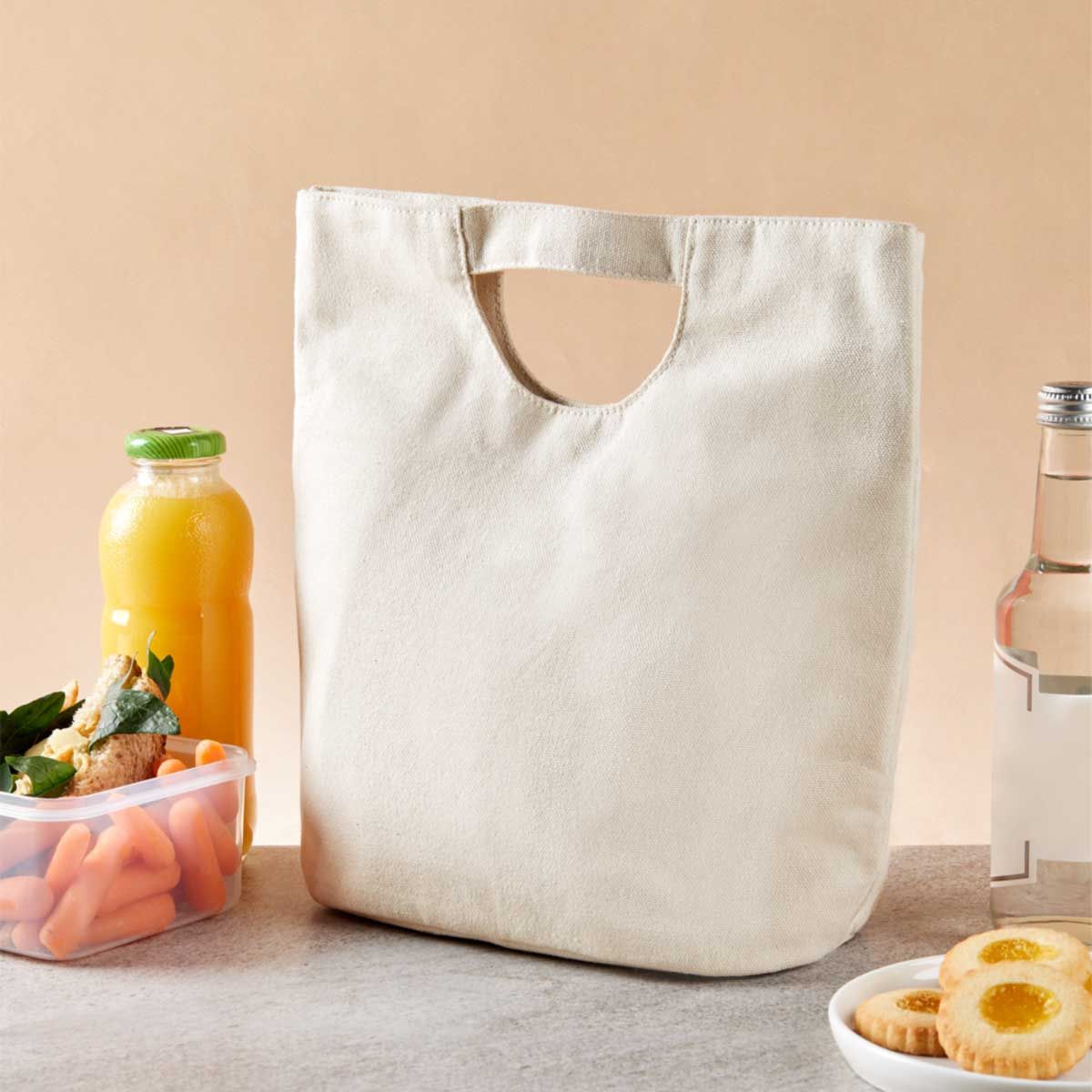 Lonchera con asa de mano y fuelle en la base. Incluye broche imantado para cerrar. Interior metalizado. Capacidad para 4 latas.