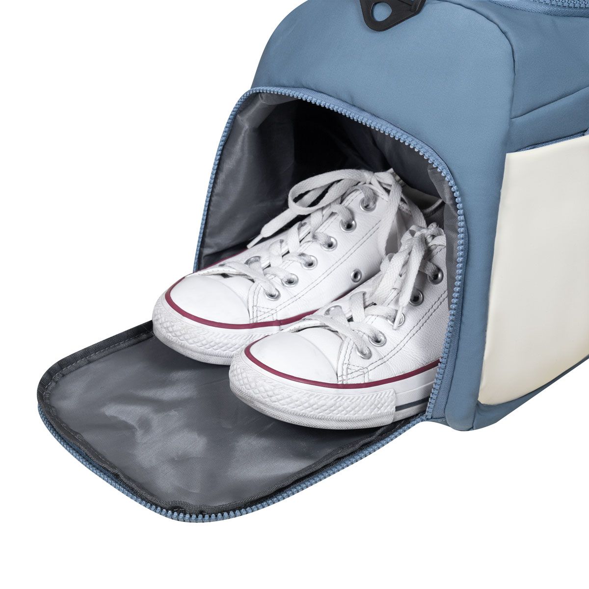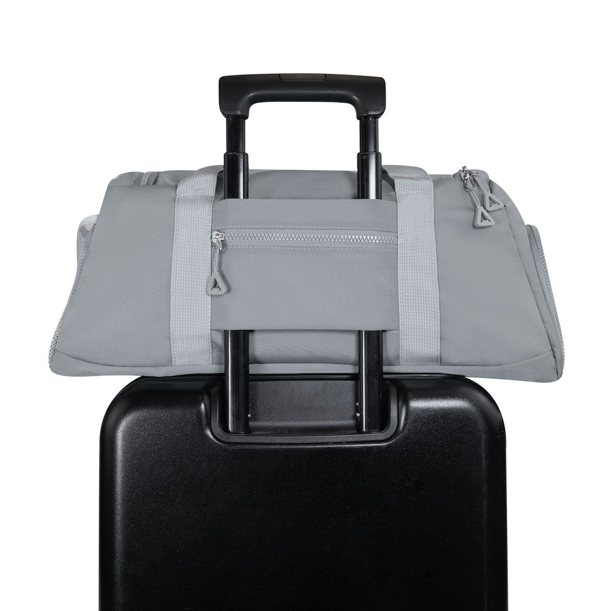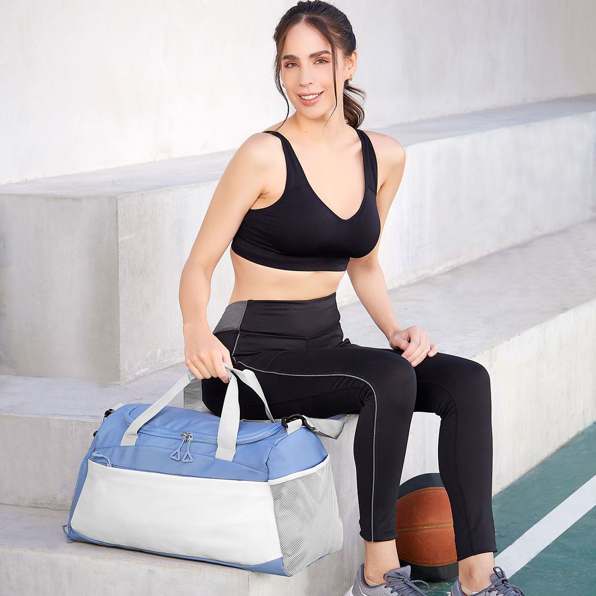 Maleta deportiva con bolsillo frontal con cierre. Su bolsillo lateral con malla, ofrece un acceso rápido a bebidas o artículos esenciales. Además, la práctica zapatera permite mantener el calzado separado y protegido. El asa para hombro se ajusta a la altura deseada. Su tamaño es ideal para llevarlo en un portaequipajes o en el maletero del automóvil. La banda trolley en la parte posterior de la maleta, la hace ideal para cualquier viaje.
