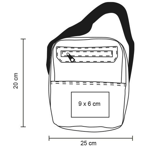 Bolsa de hombro de vinipiel con compartimento principal, dos bolsillos internos, dos bolsillos frontales con cierre, bolsillo trasero con cierre, asa superior y correa ajustable.