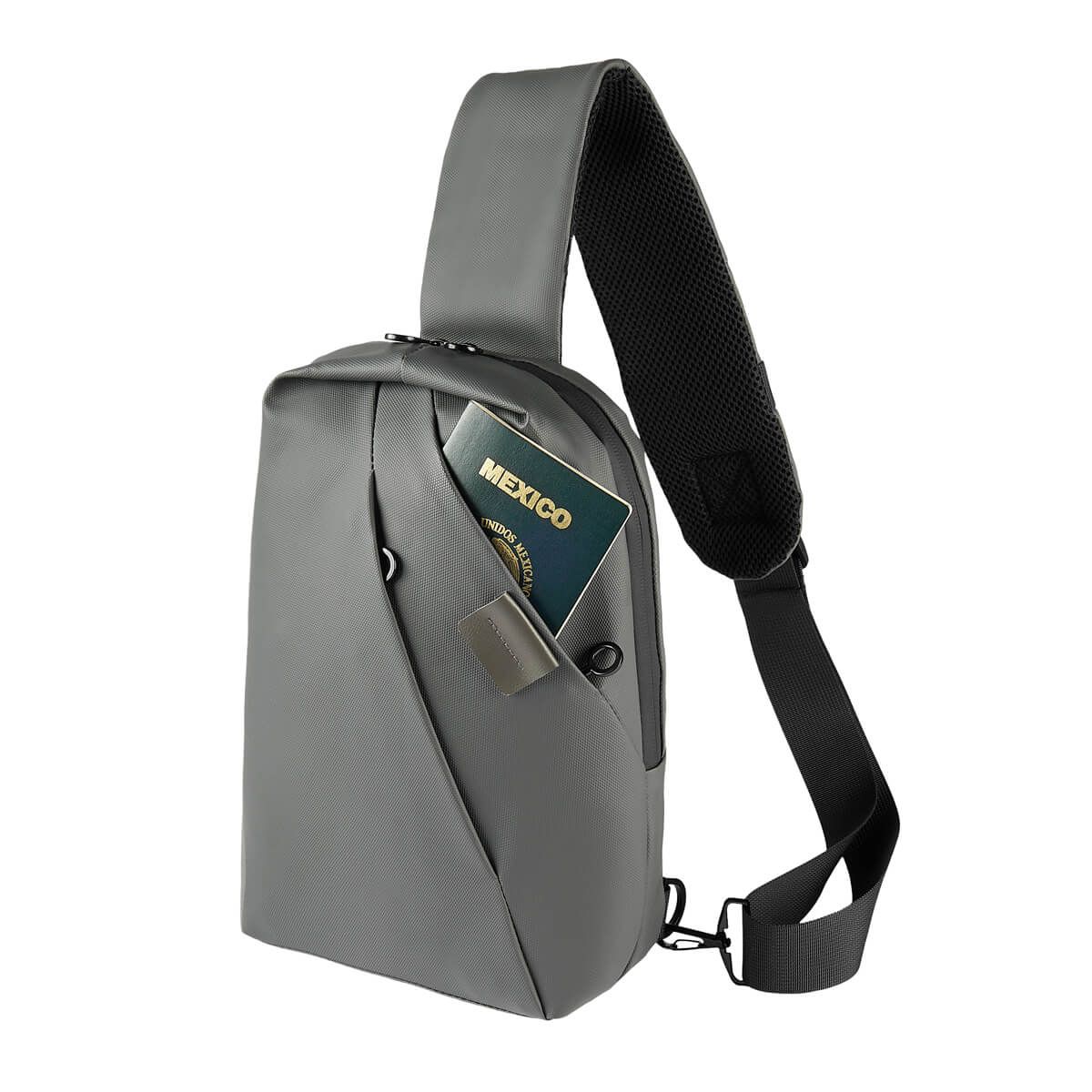 Mochila de viaje fabricada en material resistente a salpicaduras. Su diseño destaca por su parche de curpiel decorativo y por sus bolsas frontales con cierre horizontal. Cuenta con correa acolchada con broche de doble posición permite llevarla al hombro derecho o izquierdo con comodidad.