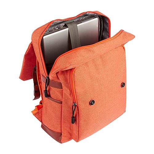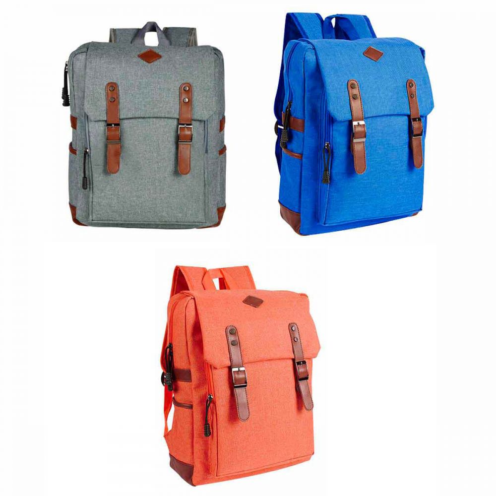 Bolsa principal y frontal con cierre. Compartimento para laptop hasta de 15". 2 bolsas laterales. Solapa frontal con broches de imán estilo hebilla. Cuenta con asa de agarre superior.