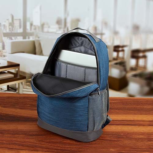 Bolsa principal con cierre y bolsa lateral de red. Bolsillo frontal. Compartimento para laptop de 16”. Tirantes ajustables y asa de agarre superior.