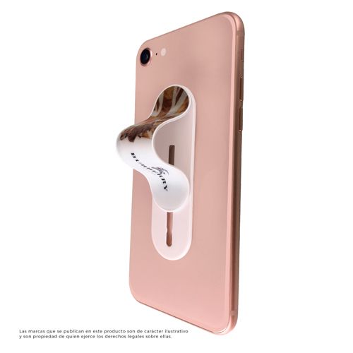 Soporte para smartphone con diseño ultra delgado, uso fácil y seguro. Compatible con carga inalámbrica.