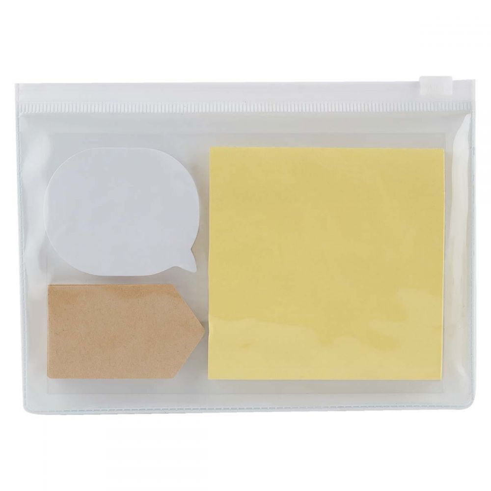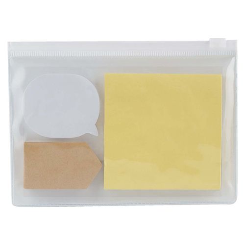 Incluye 3 block de notas adheribles de diferentes formas y colores.