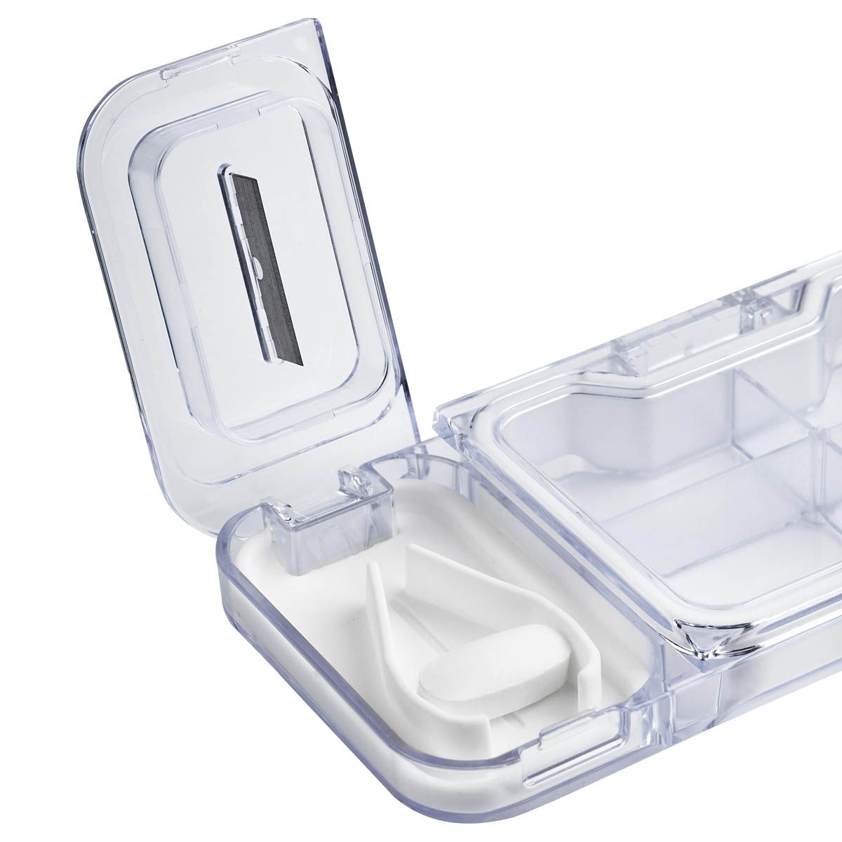 Pastillero con cortador integrado que permite dividir tus pastillas de manera segura y precisa. Además, sus cuatro compartimentos ofrecen un espacio óptimo para organizar tus dosis de manera sencilla y eficiente. Compacto y portátil, es ideal para llevar en el bolso, en la oficina o durante tus viajes.