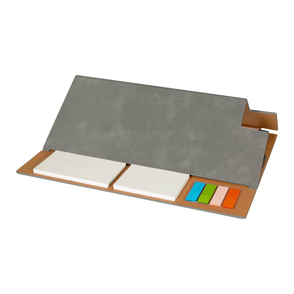 Carpeta planeador con cubierta rígida. Sus hojas blancas ofrecen un lienzo para dibujar, esbozar y escribir. Su diseño plegable la convierte en un práctico soporte para tablet o smartphone. En su interior, cuenta con un block de 40 hojas, dos blocks de 50 notas adhesivas y 4 colores diferentes de banderines, cada uno con 25 piezas. Su clip metálico mantiene el block en su lugar y te permitirá reusarla, una vez que se agoten sus hojas.