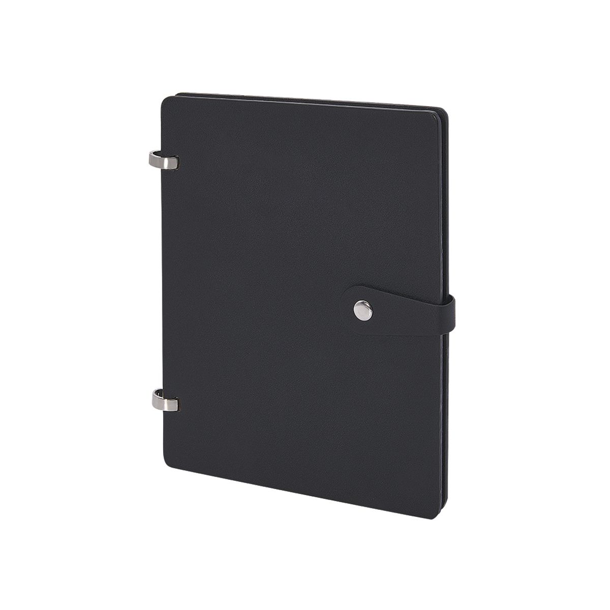 Libreta con planeador para organizar actividades diarias. Incluye dos aros metálicos, botón de presión y 60 hojas de 100 gr.