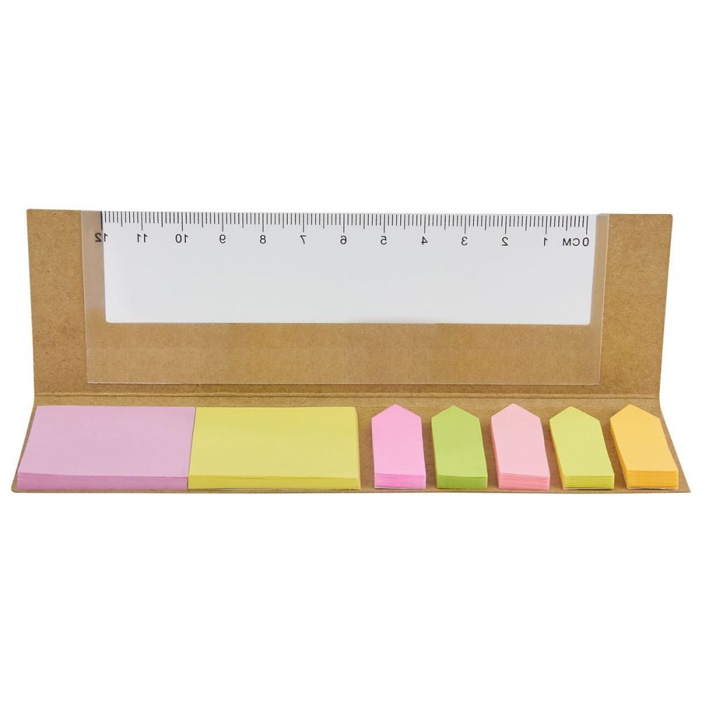 Incluye notas adheribles: 25 amarillas, 25 rosas y banderillas de 5 colores. Regla de 12 cm en la cubierta.