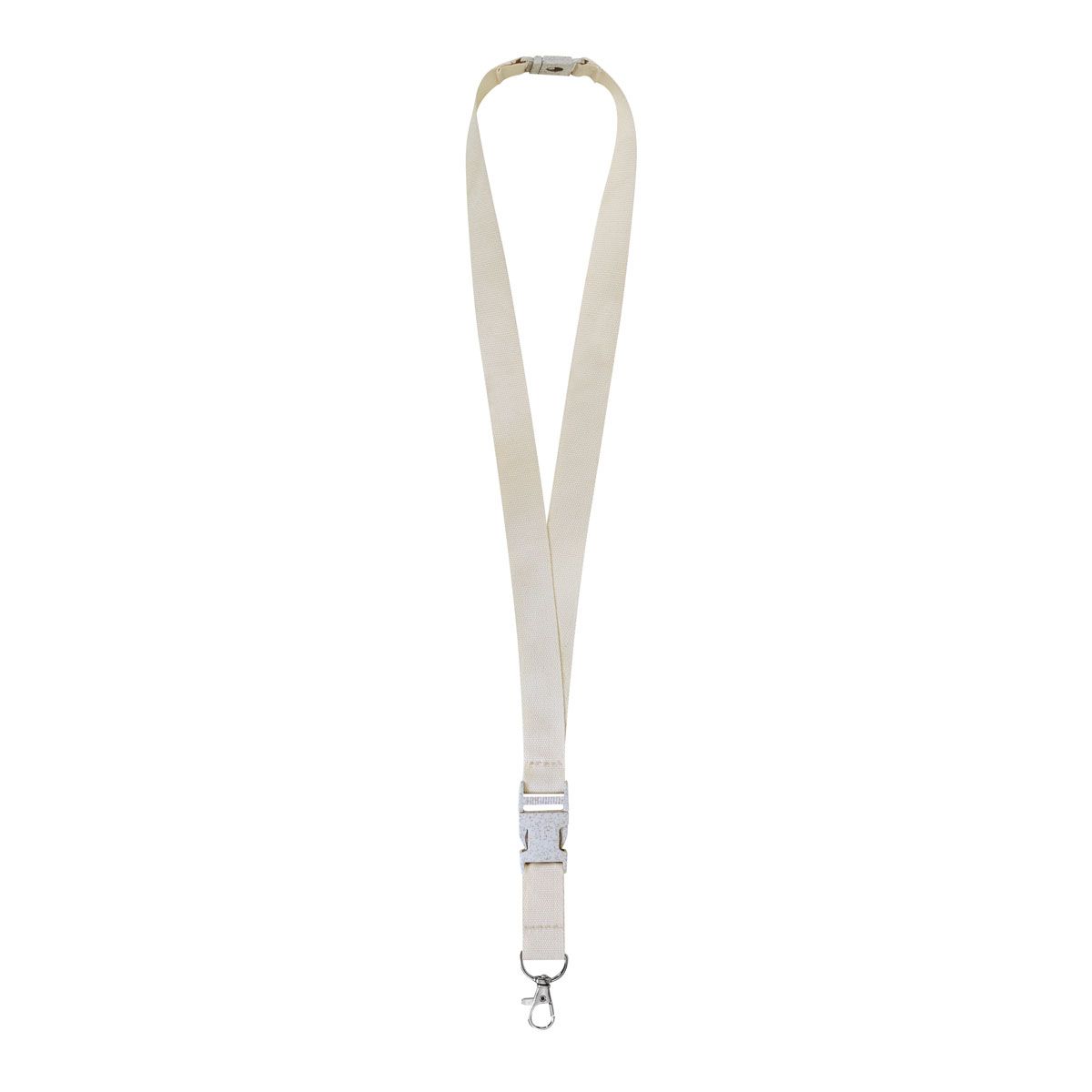 Fabricado con materiales eco amigables. Incluye broche de seguridad, clip desmontable y gancho metálico con giro de 360°.