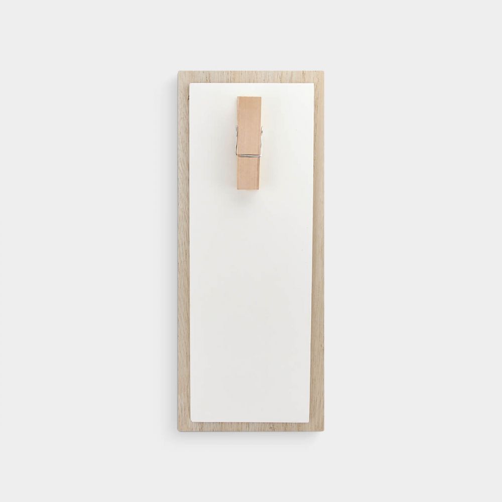 Portarretrato con sujetador para colgar en la pared. Posición vertical con gancho para sujetar foto de 10 x 15 cm.