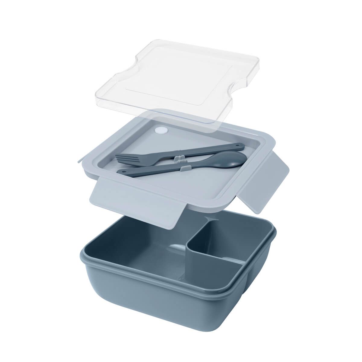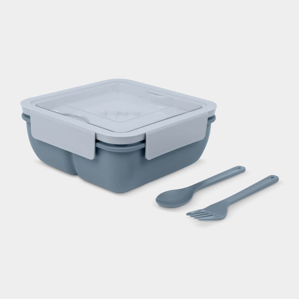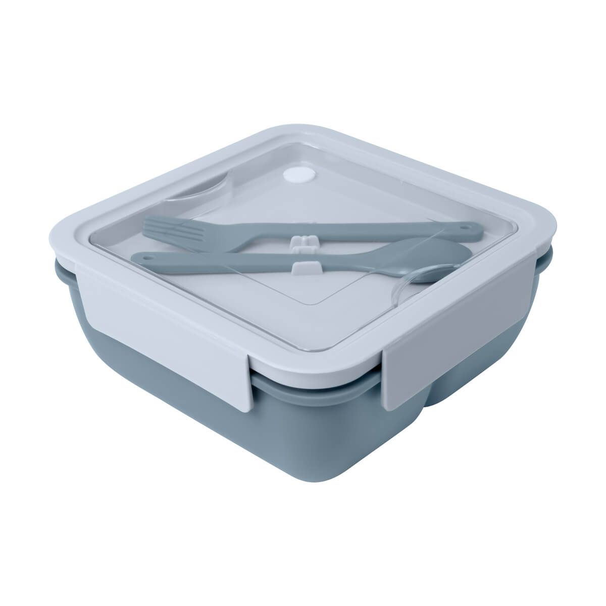 Contenedor de alimentos compacto y versátil con divisor interno para mantener tus alimentos seguros y organizados. Tapa con cierre hermético de cuatro pestañas para evitar derrames. Sobre tapa con compartimento integrado que incluye un tenedor y una cuchara. Su innovador diseño, ofrece una solución práctica para transportar tus alimentos a cualquier lugar. Apto para microondas.