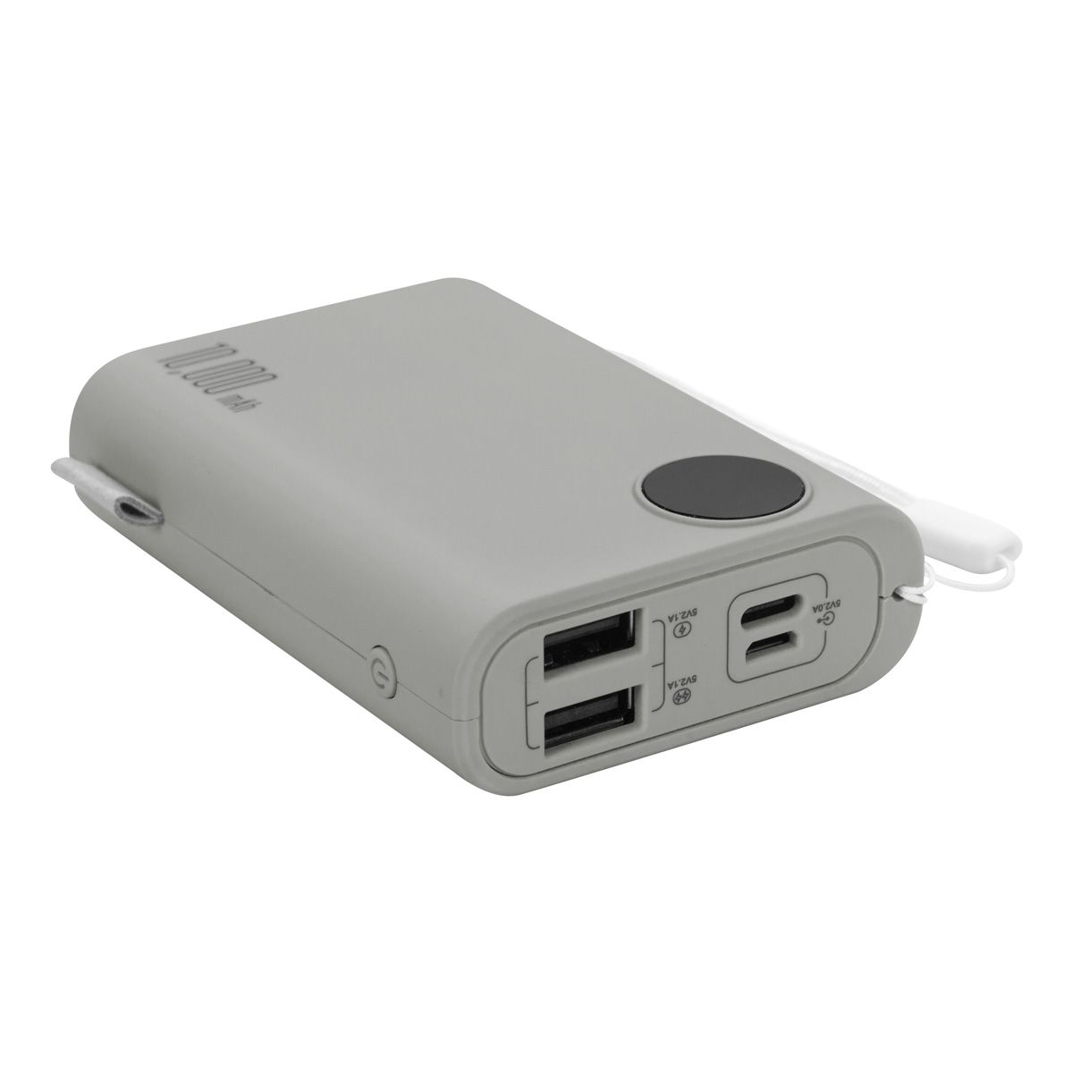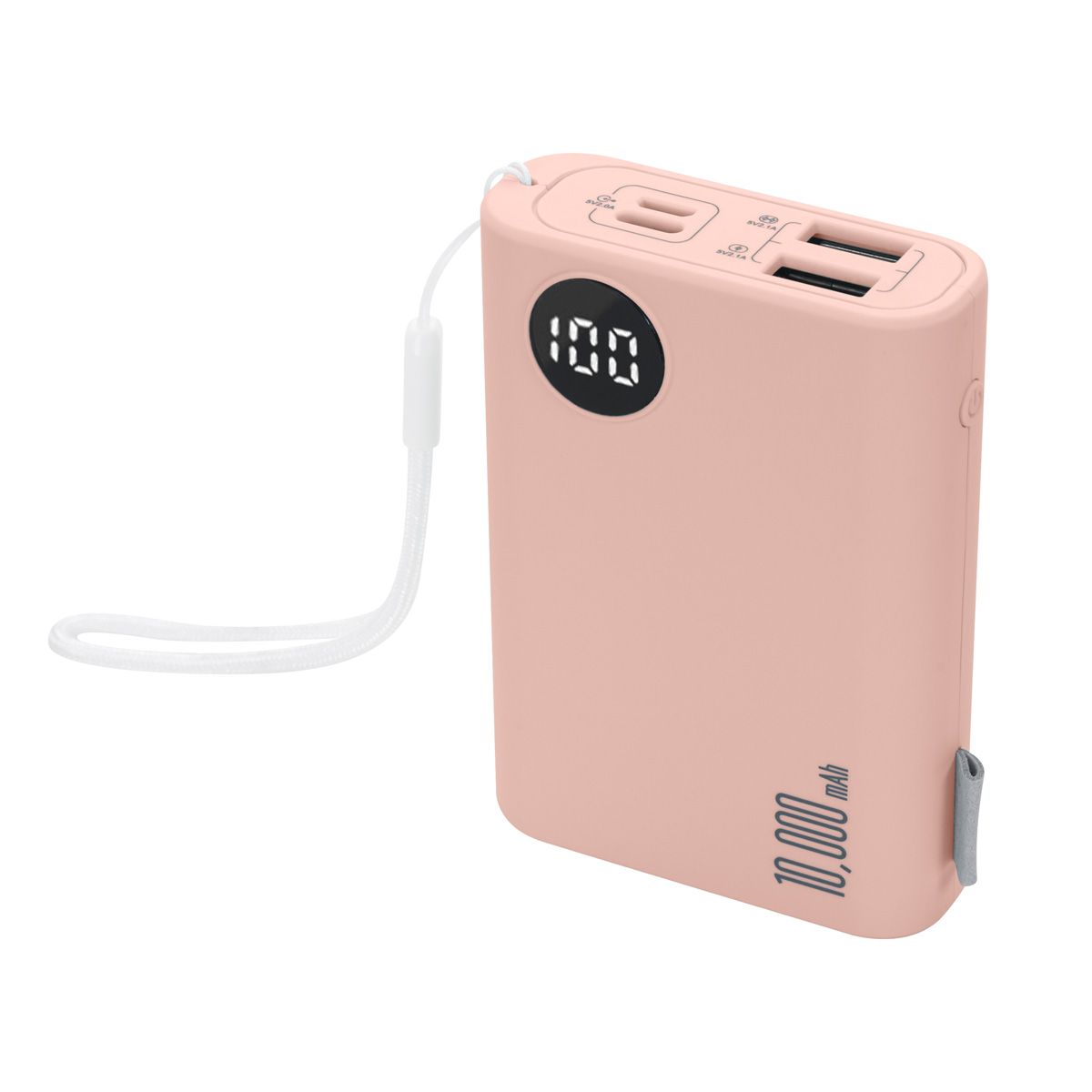 Batería auxiliar para smartphone, capacidad 10,000 mAh. Contiene 2 puertos de salida, USB para carga de dispositivos y 2 puertos de entrada, micro USB y tipo C exclusivos para recarga de la batería (no carga dispositivos) y . Incluye display indicador de carga, cable con conector tipo C y caja individual.